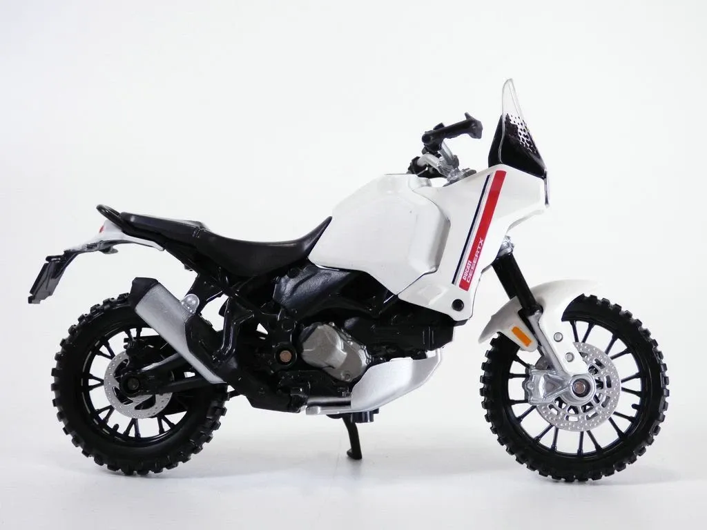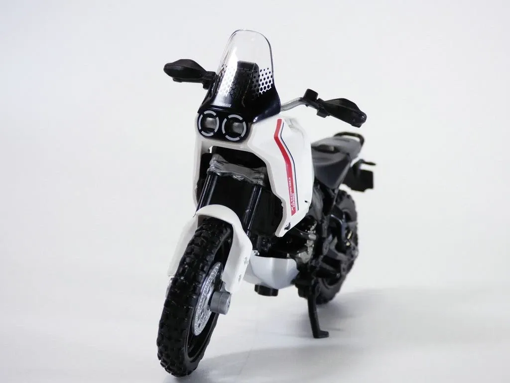 Високоякісна масштабна копія сучасного ендуро Ducati DesertX. Модель належить до серії Special Edition, що гарантує покращену якість фарбування та деталізації вузлів.