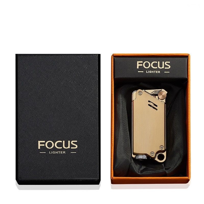 Газова турбо-запальничка FOCUS у стилі Industrial / Steampunk золотиста