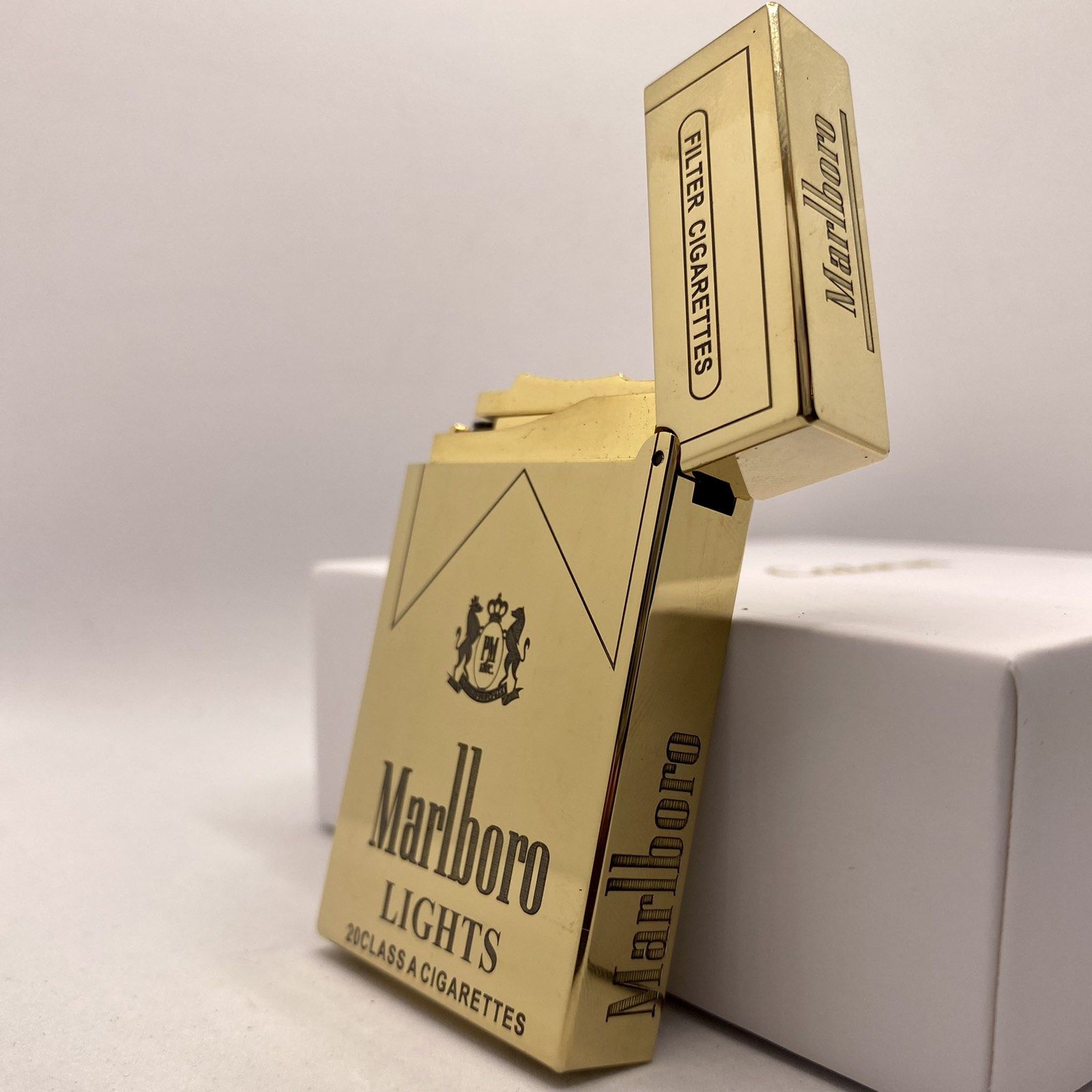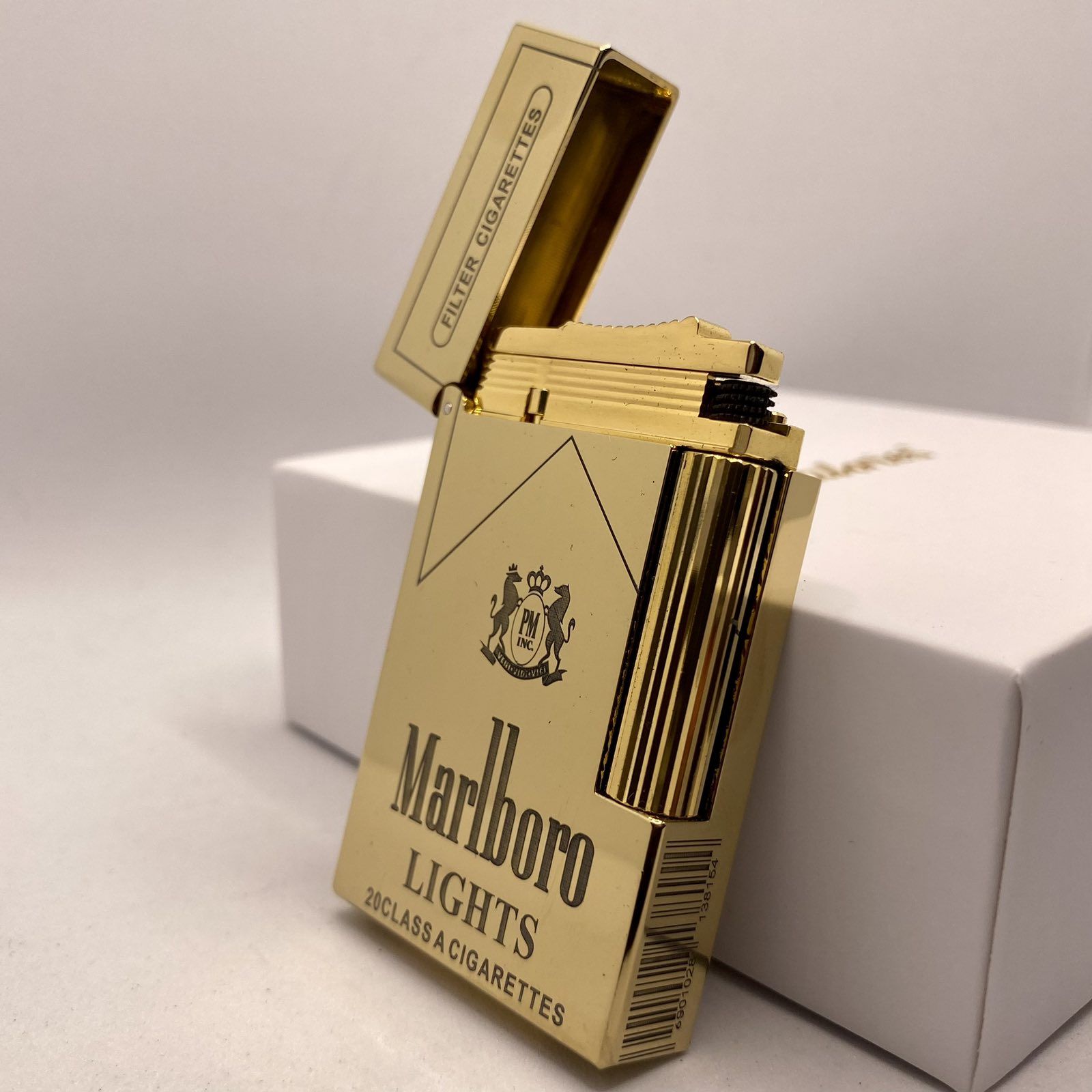 Ця запальничка є втіленням стилю та функціональності. Виготовлена з високоякісного металу із розкішним золотим покриттям, вона майстерно імітує культову пачку сигарет Marlboro Lights, додаючи шарму та вінтажного шику вашому образу.