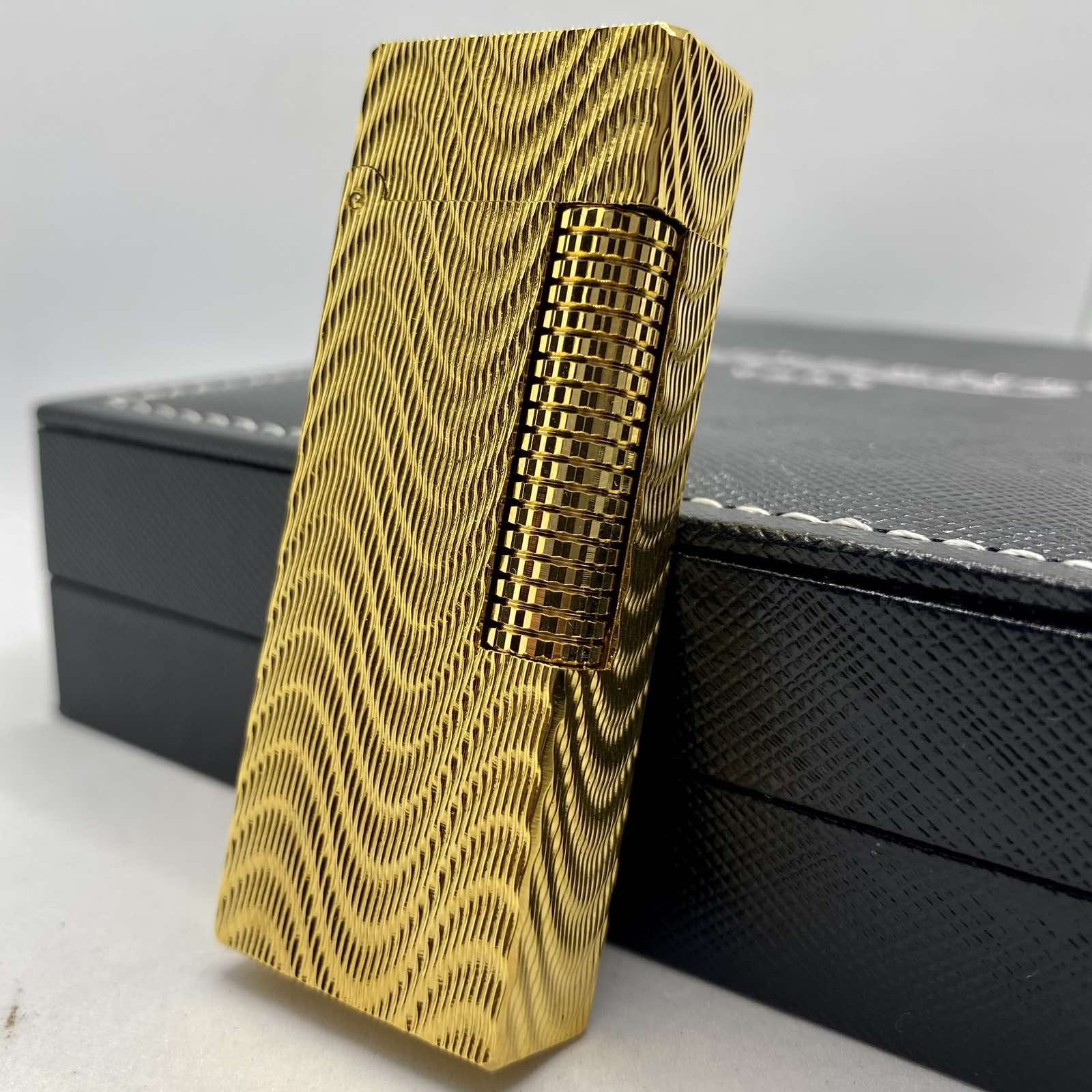 Газова Запальничка Thorens з унікальним хвилястим гравіюванням золотиста