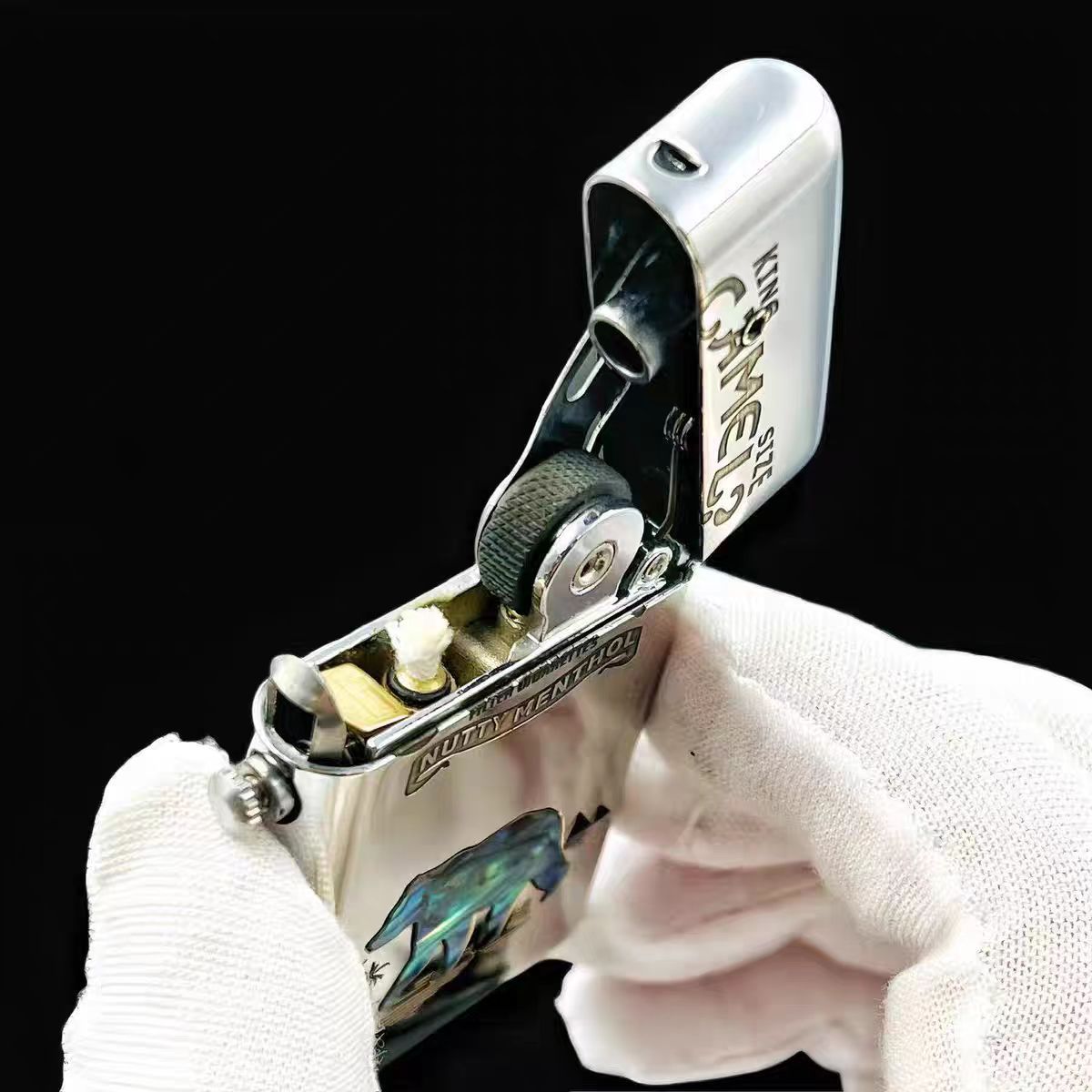 Бензинова напівавтоматична запальничка Zorro «Camel Nutty Menthol» з перламутровою інкрустацією