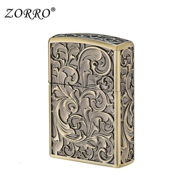Бензинова запальничка Zorro з об’ємним гравіюванням (Антична латунь)