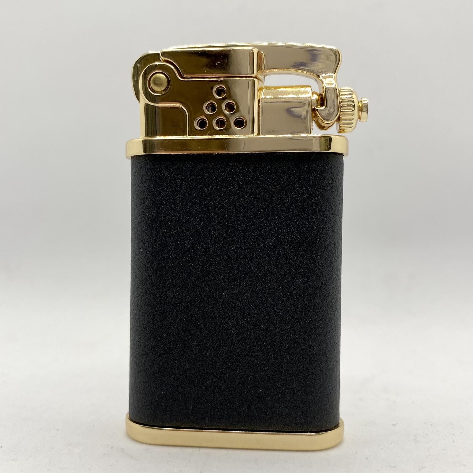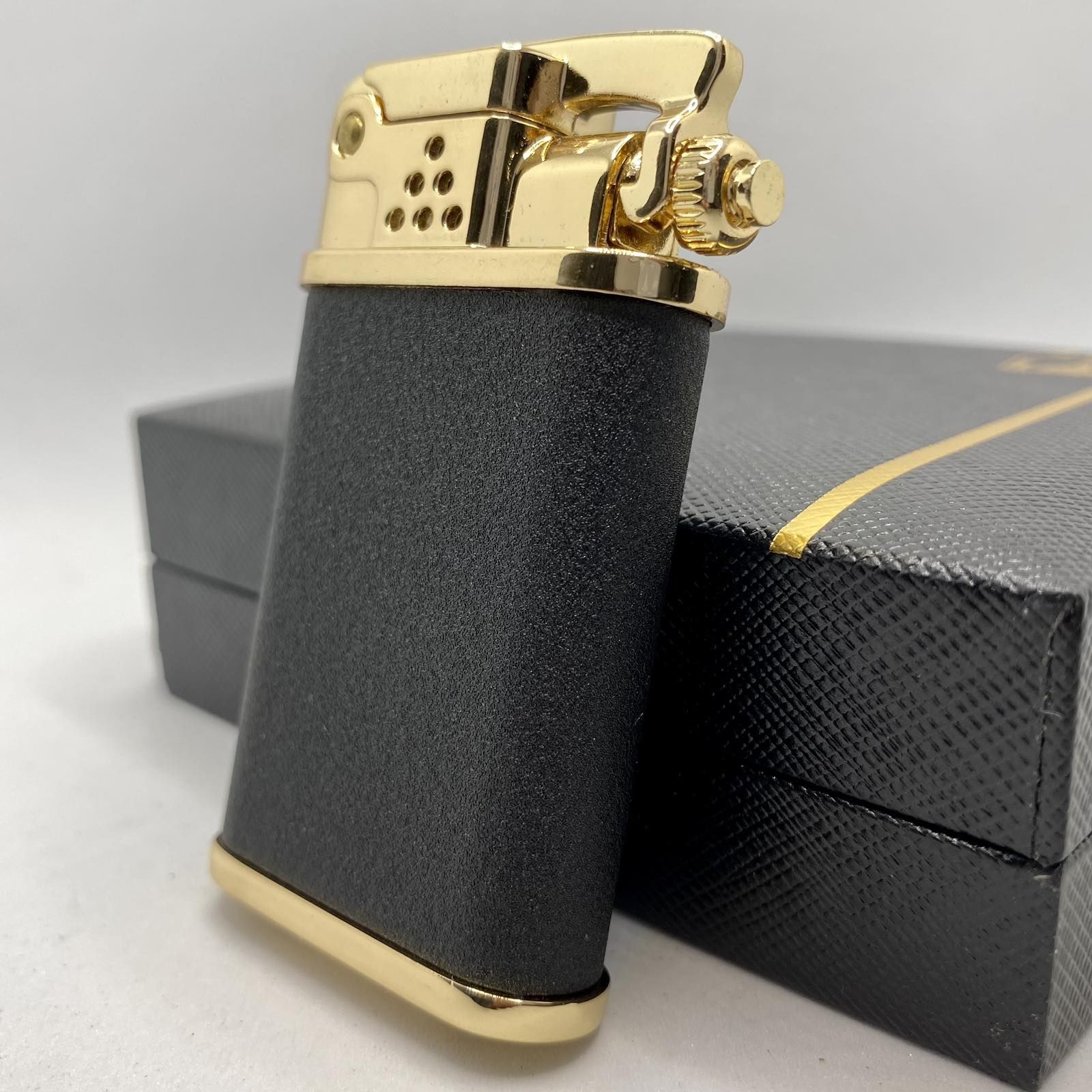 Елегантний Дизайн: Вишукане поєднання полірованого золотистого металу та глибокого чорного, текстурованого покриття створює ідеальний баланс між розкішшю та мінімалізмом. Завдяки цій обробці запальничка надійно лежить у руці.