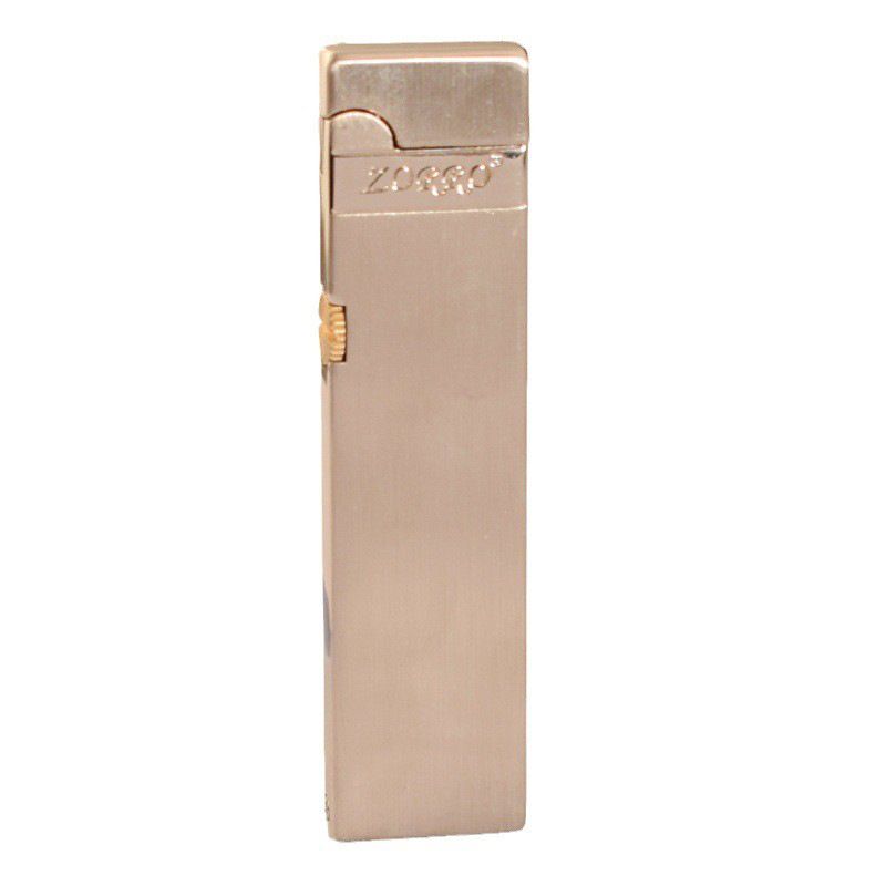Шукаєте надійний аксесуар з характером? Ця бензинова запальничка Zorro ідеально підійде для тих, хто цінує мінімалізм та функціональність. Її витягнутий, прямокутний корпус у кольорі матового срібла/шампань виглядає одночасно строго і розкішно.