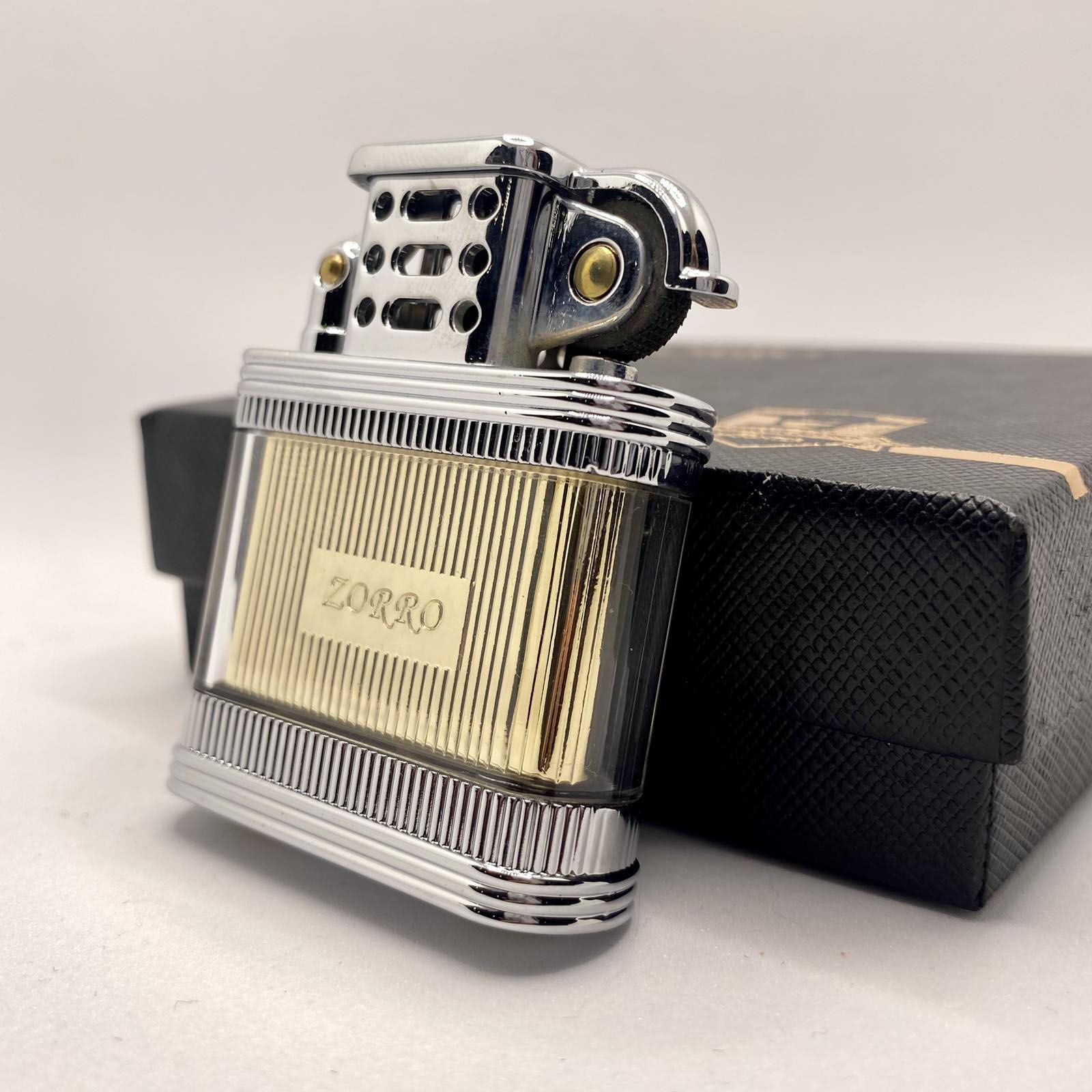 Шукаєте аксесуар, який привертає погляди? Запальничка Zorro у виконанні "Transparent Gold" — це поєднання ретро-класики та сучасного дизайну. Її головна фішка — прозорий корпус, крізь який видно роботу внутрішнього механізму та золотисте оздоблення. Це виглядає неймовірно ефектно під час використання.