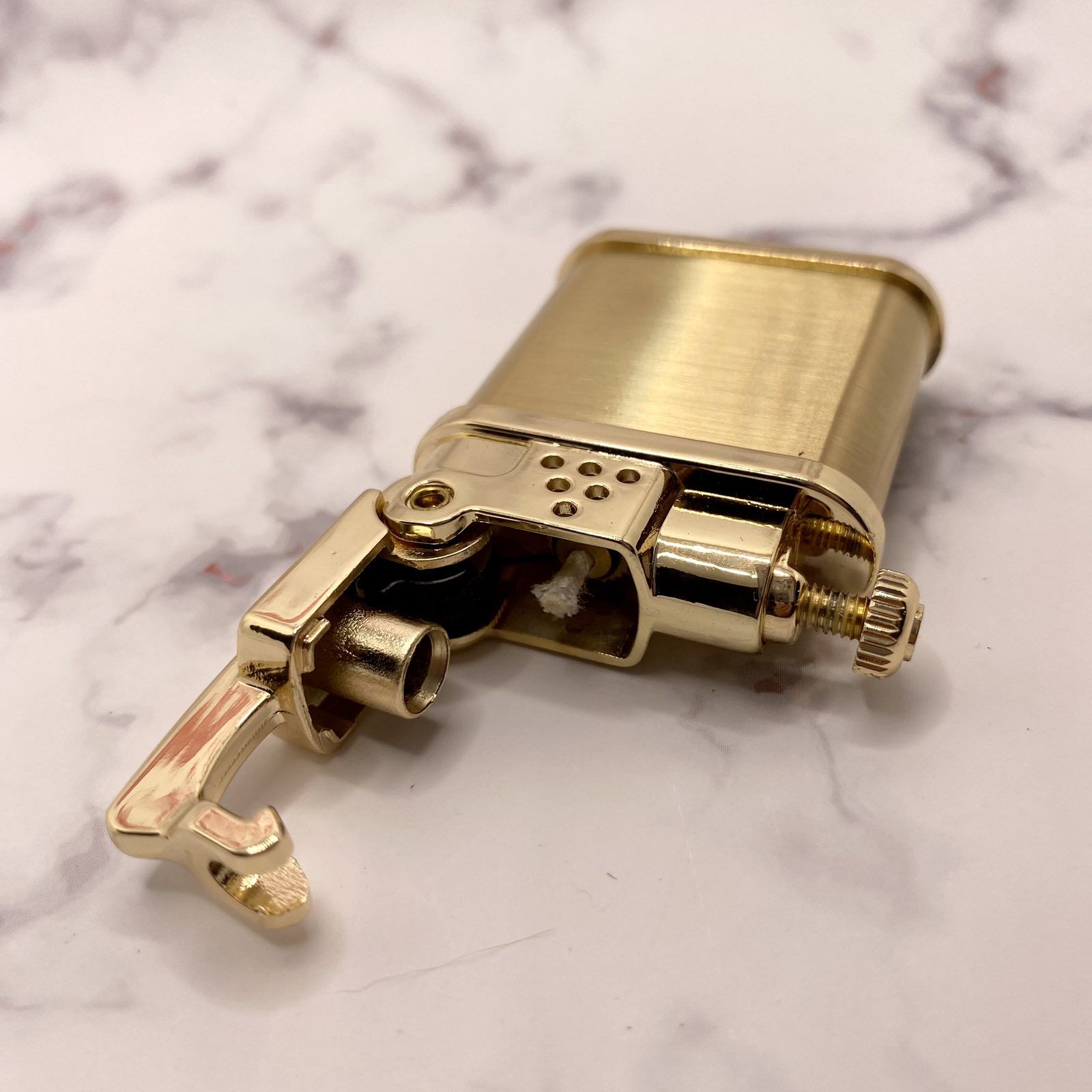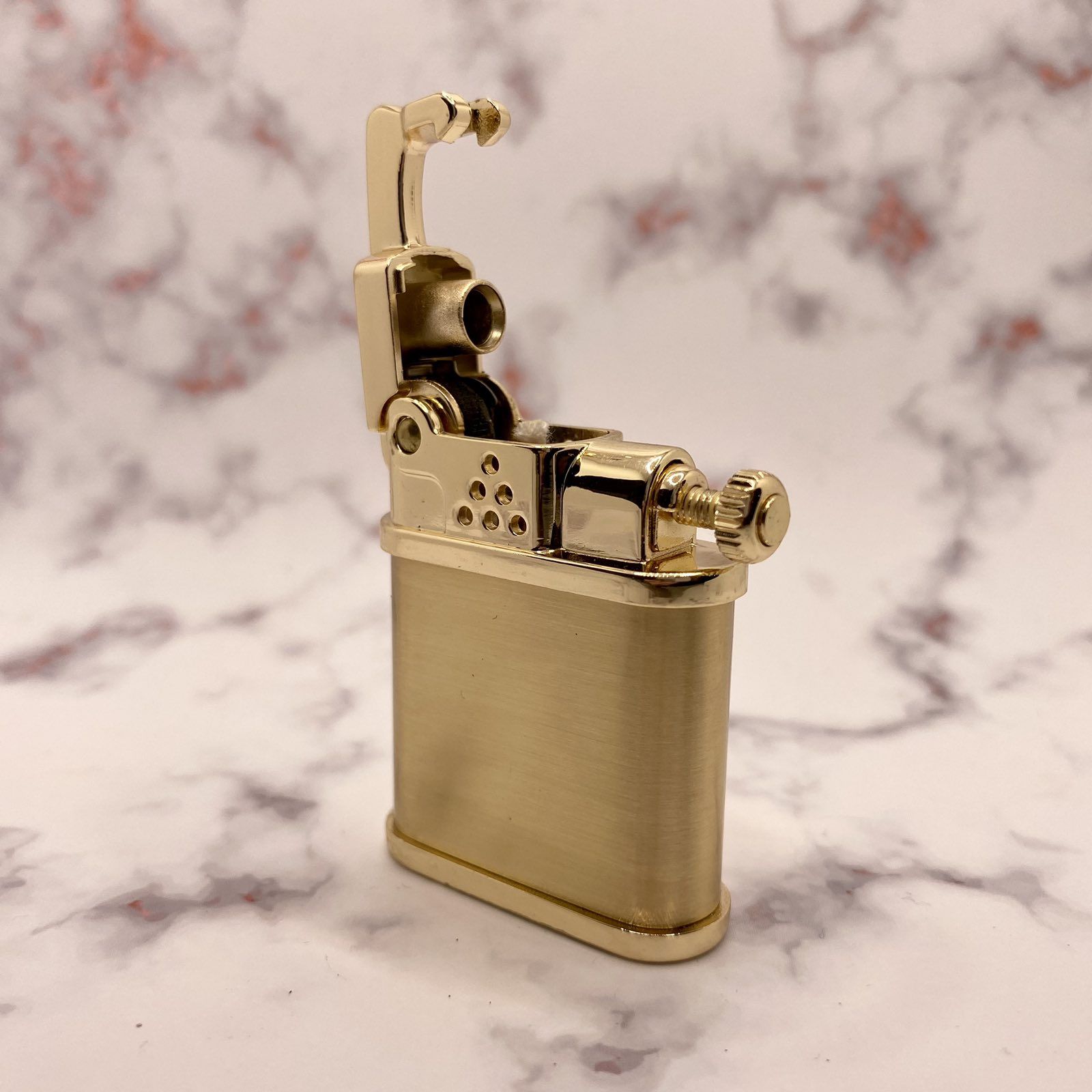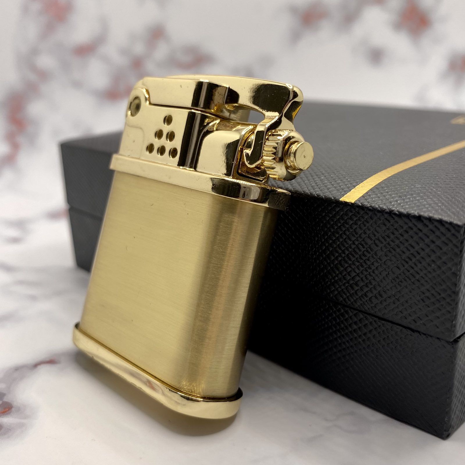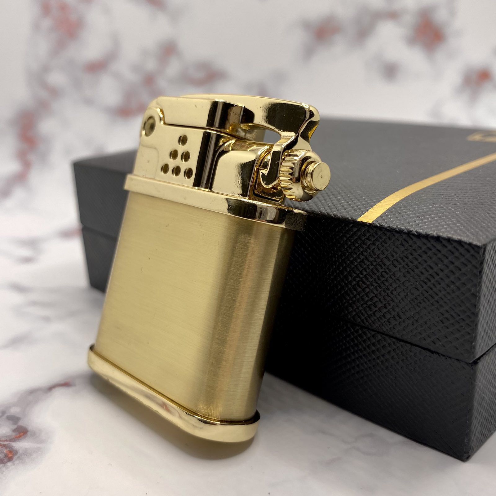 Ця запальничка виконана у вінтажному стилі, нагадуючи про золоту еру надійної механіки. Її корпус має розкішний матово-золотистий колір з ледь помітною текстурою, яка імітує благородну патину.