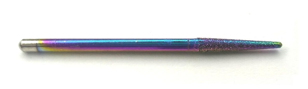 Фреза з алмазним напиленням Chameleo Diamond Burr F 10009 забарвлення Хамелеон, Конус (діаметр - 2,5 мм, w - 14 мм) підходить для чищення бічних валиків, обробки бічних синусів, шліфування нігтьової пластини перед нарощуванням і т.п.