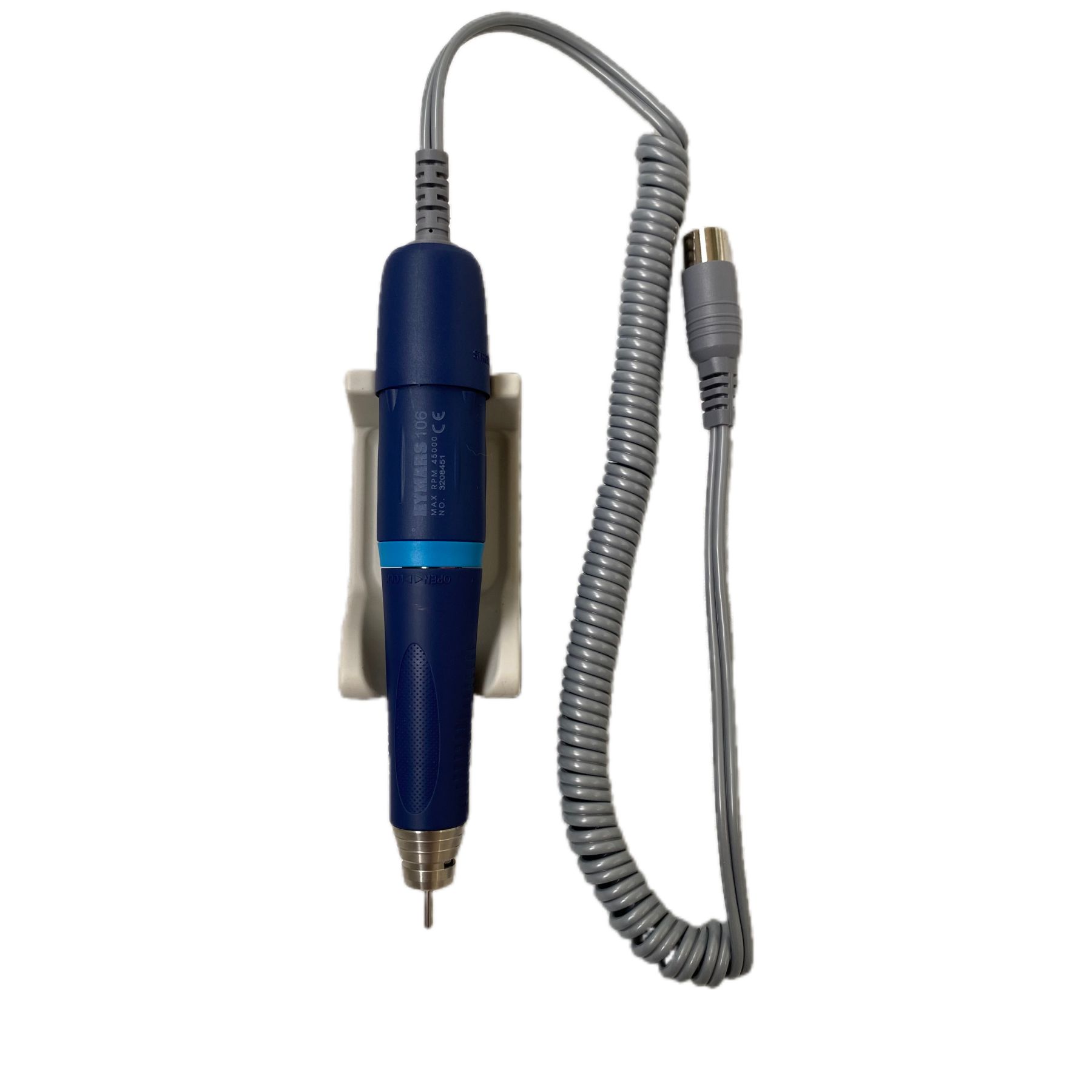Фрезерный аппарат укомплектован ручкой HYMARS 106, максимальная рабочая скорость которой составляет 45000 об/мин, а крутящий момент – 5 Н·см. Ручка Hymars 106 – считается лучшей, мощной из всей линейки ручек-микромоторов с коллекторами.