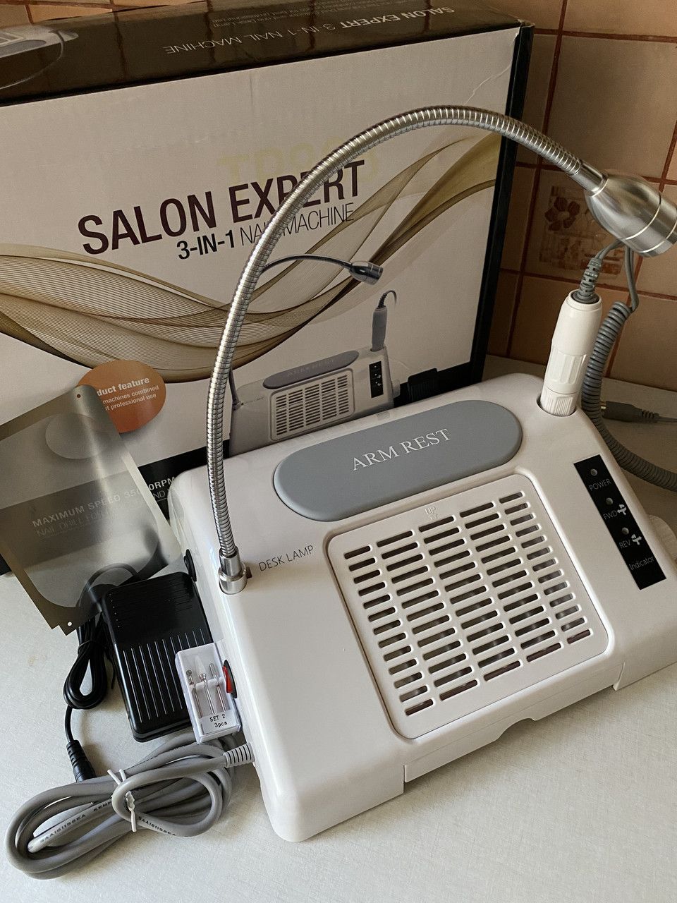 Апарат для манікюру та педикюру Salon Expert 3in1, 35 000 об/хв – це фрезер, пилосос (витяжка) та світлодіодний світильник, чудовий дуже потужний функціональний апарат для манікюру та педикюру призначений для професійного використання.