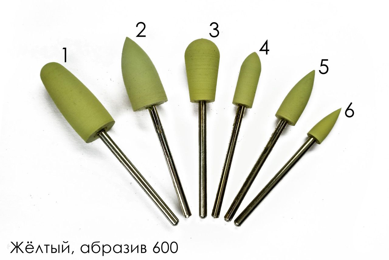 Силіконова насадка N6 Жовта абразивність 600, форма куля, (діаметр головки -5 мм, висота головки - 12 мм)