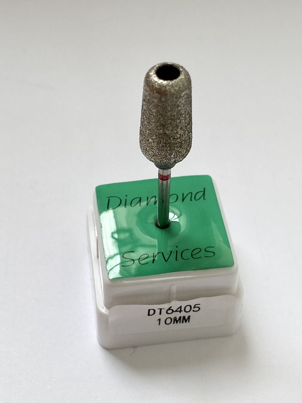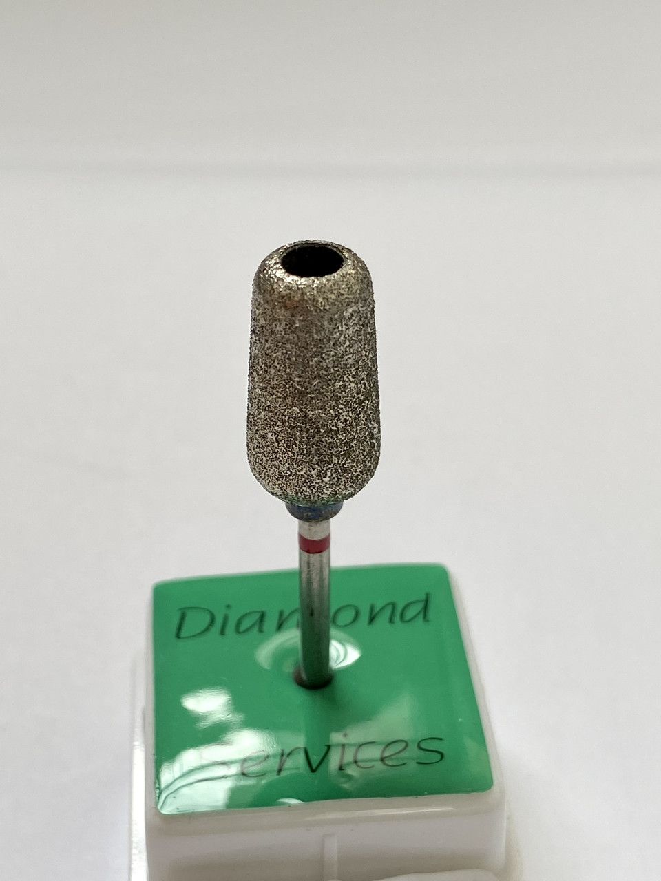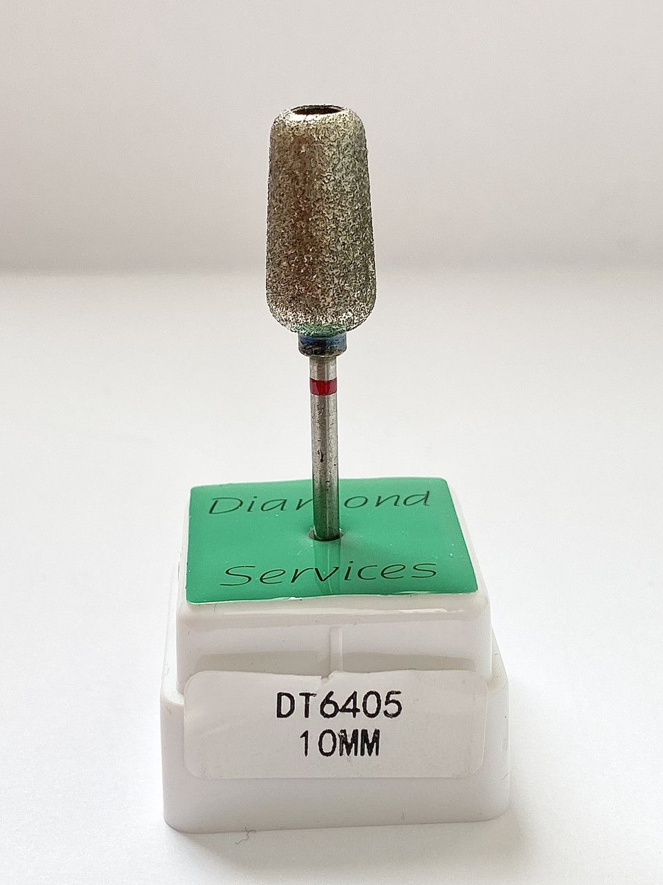 Діамантова фреза для педикюру діаметр -10 мм, H -18 мм. Робочу поверхню покрикають кристали хрому нікелевого сплаву, вирощені на поверхні сталевої основи методом електролізу.