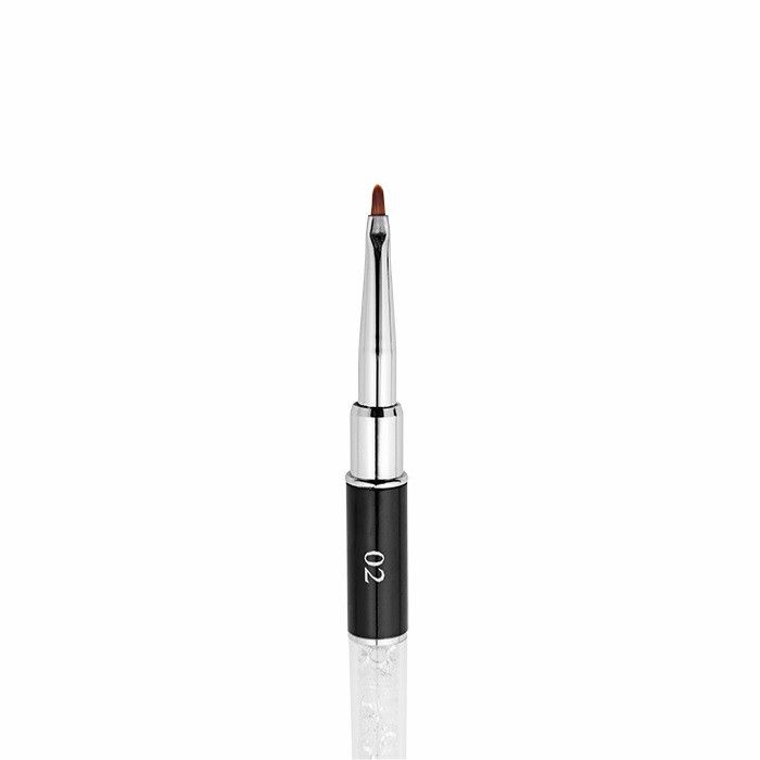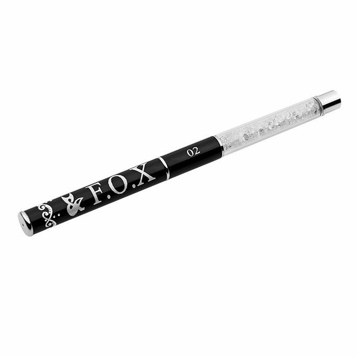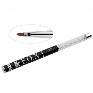 Пензель FOX # 02 "Язичок" цікавого дизайну зі скляною колбочкою, де знаходяться дрібні діаманти, оснащений ковпачком для зручного зберігання, оскільки він допомагає захистити ворс пензля від пошкоджень і зберегти його в хорошому стані.