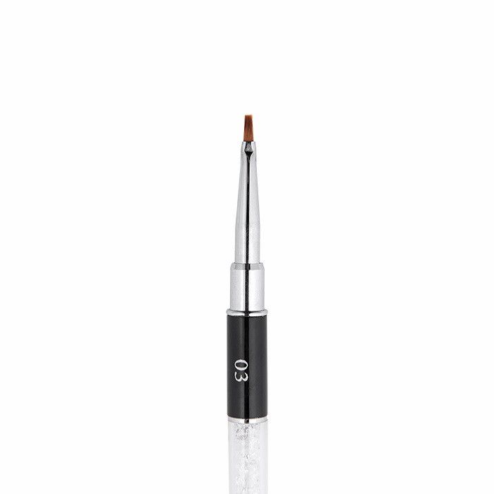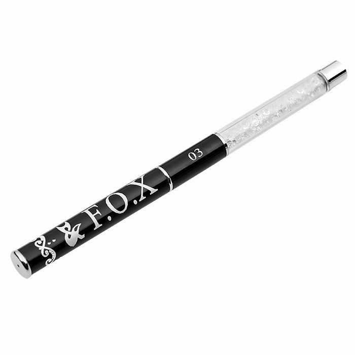 Пензель FOX # 03 цікавого дизайну зі скляною колбочкою, де знаходяться дрібні діаманти, оснащена ковпачком для зручного зберігання, оскільки він допомагає захистити ворс пензля від пошкоджень і зберегти його в хорошому стані.