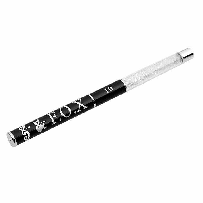 Пензель FOX # 10 "Квадрат скошений" цікавого дизайну зі скляною колбочкою, де знаходяться дрібні діаманти, оснащена ковпачком для зручного зберігання, тому що він допомагає захистити ворс пензля від пошкоджень та зберегти її в хорошому стані.