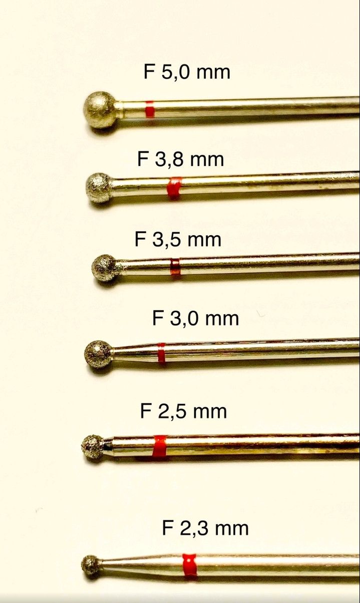 Фреза с алмазным напылением Шарик (диаметр - 5,2 мм) применяется для среза кутикулы ,боковых валиков и заусенцев .Шарики представлены в нескольких диаметрах .