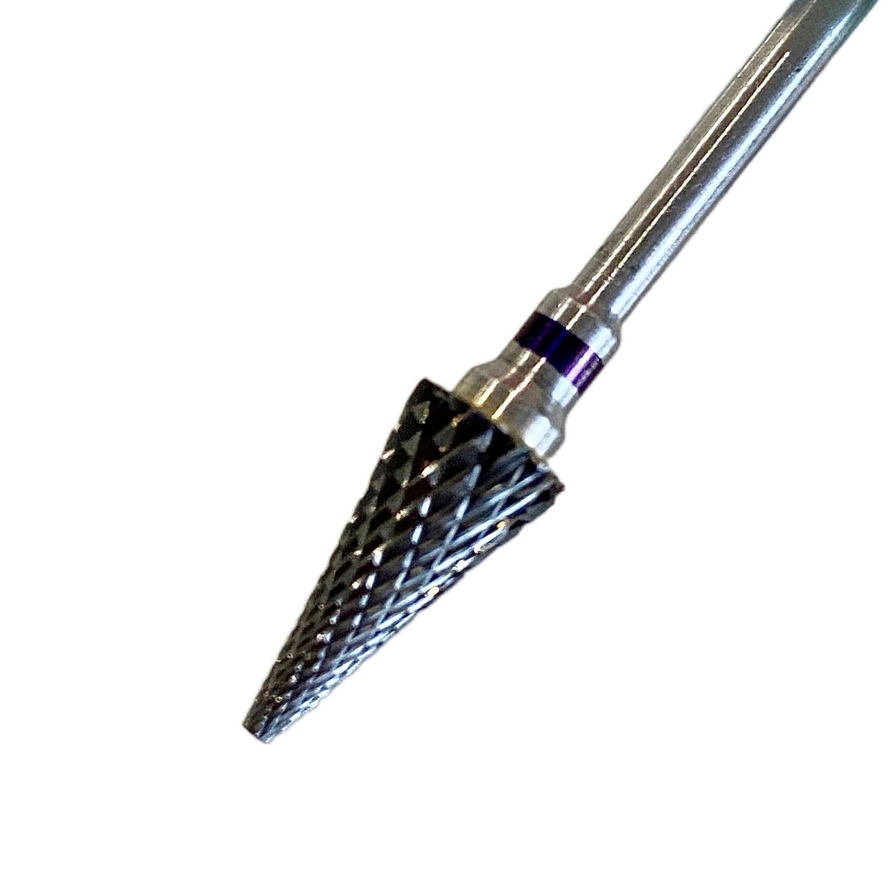 Твердосплавная фреза Конус фиолетовая насечка из метала повышенной твердости,насечка мелкая крестообразная, применяется для снятия искусственного материала (геля, акрила,гель лака и т.д.),для коррекции искусственных ногтей.
