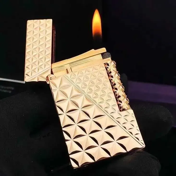 Елегантна газова запальничка THORENS золота з геометричним орнаментом