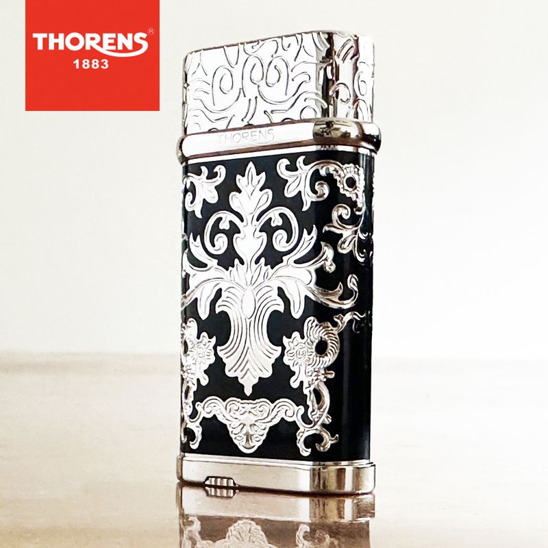 Розкішна газова запальничка THORENS в чорному кольорі зі срібним орнаментом