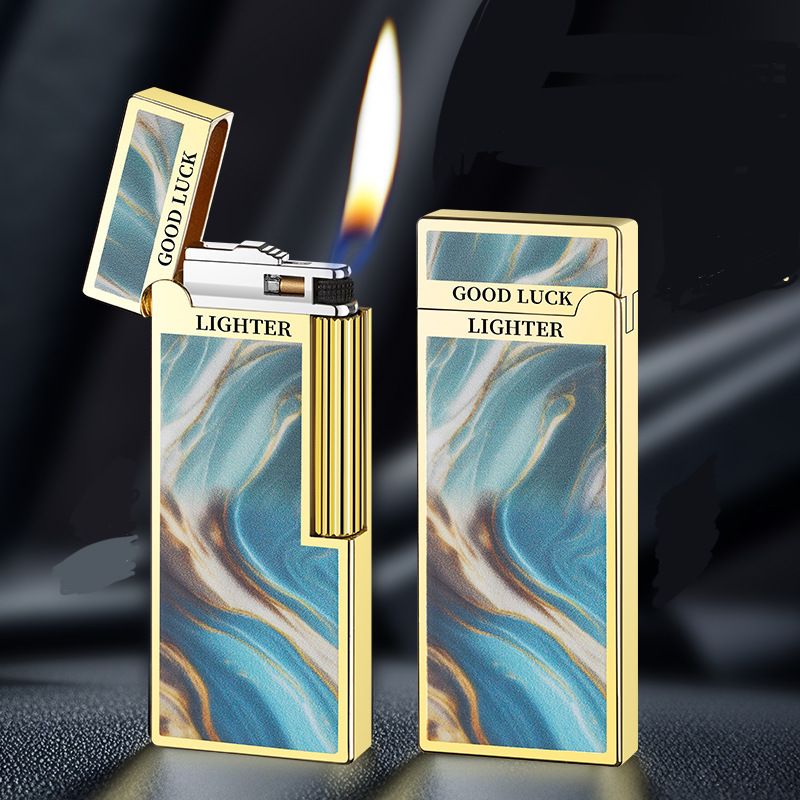 Елегантна Газова Запальничка HYMRS "Good Luck" — Бірюзово золотий Мармур та Золото