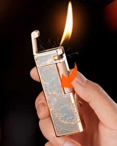 Полум'я, що Привертає Увагу: Класичне, стійке та яскраве полум'я миттєво з'являється після відкриття кришки. Надійний газовий пальник дозволяє багаторазово заправляти запальничку, роблячи її довговічною інвестицією.