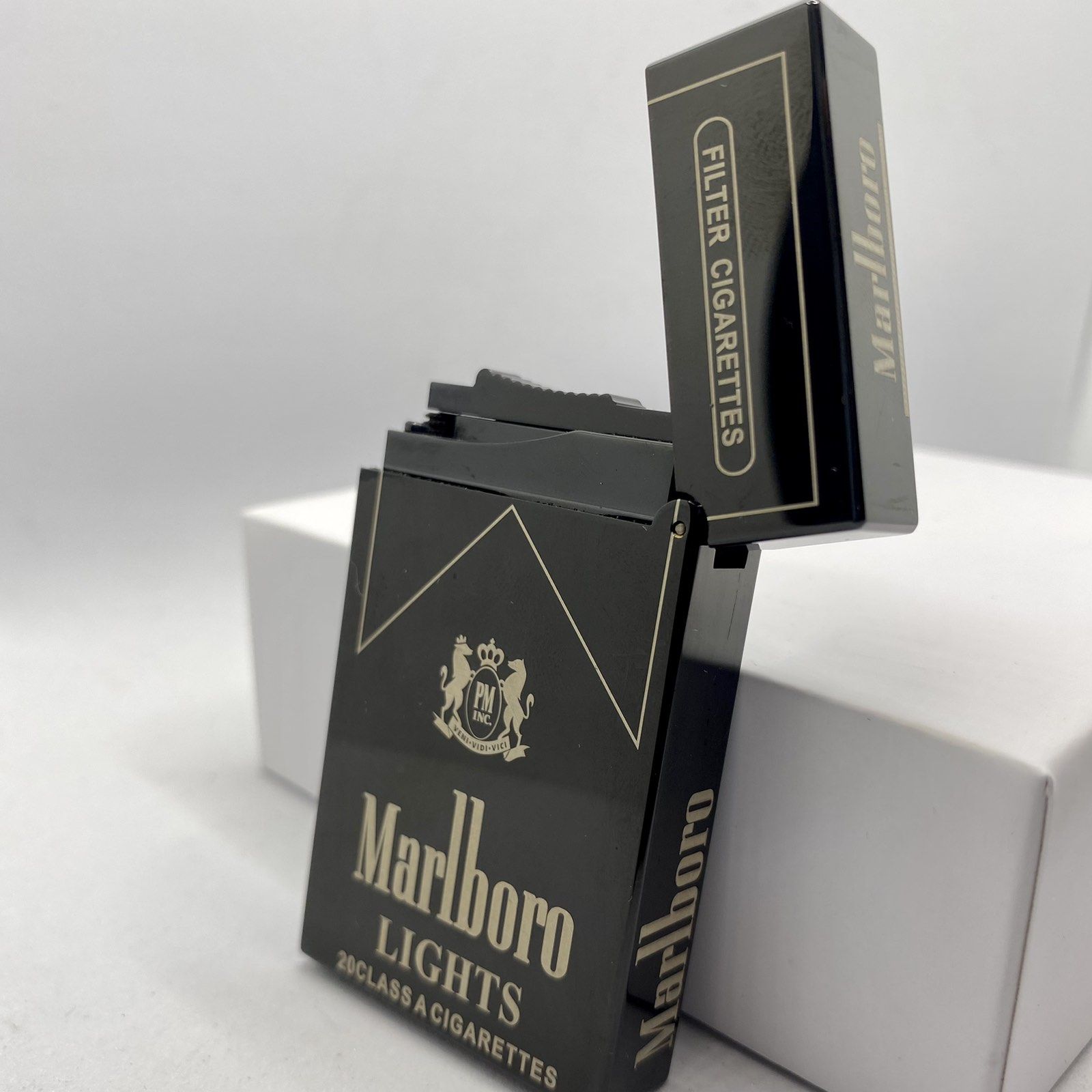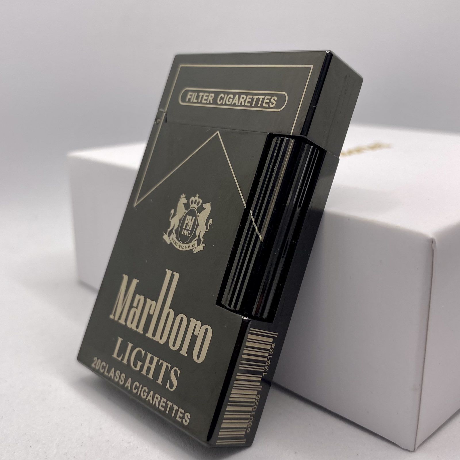 Для тих, хто цінує стиль, якість та оригінальність. Ця запальничка є не просто джерелом вогню, а предметом, що привертає увагу, виконаним у формі легендарної пачки цигарок Marlboro Lights.