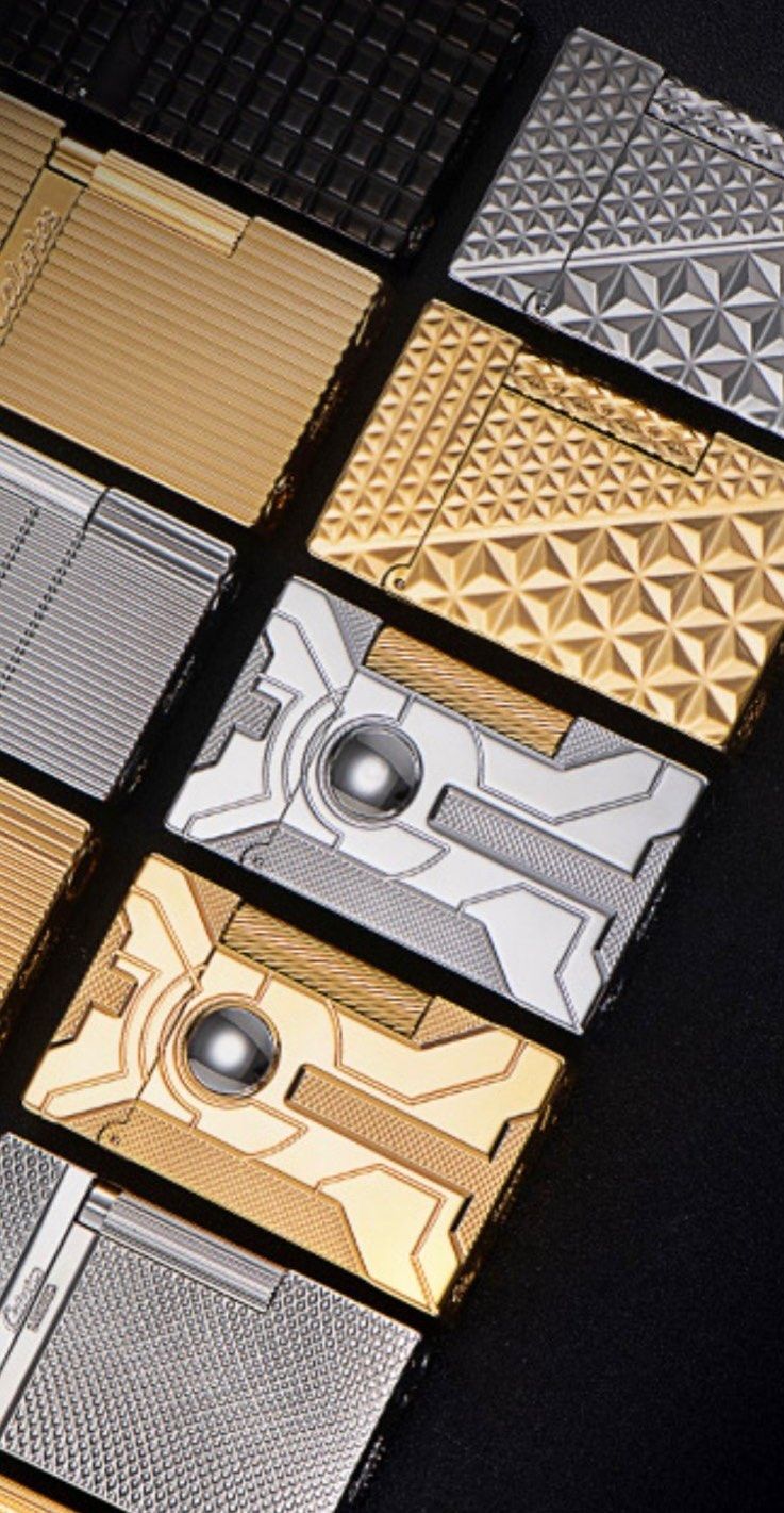 Ця запальничка Thorens, що виблискує теплим сяйвом чистого золота, є шедевром дизайну. Її прямокутний корпус прикрашають витончені геометричні візерунки, які поєднують футуристичний та класичний стилі. Чіткі лінії та рельєфні елементи, що нагадують гравіювання, надають виробу глибини та динаміки.