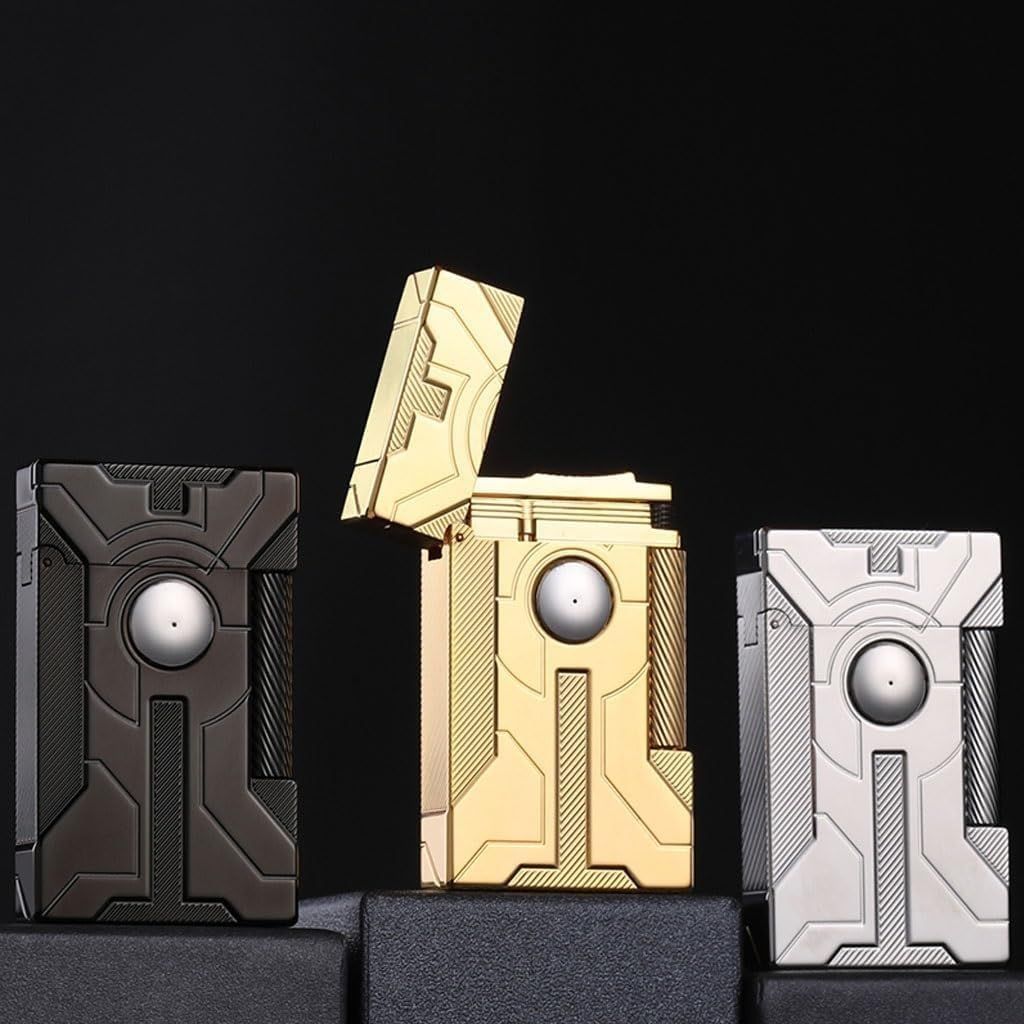 Центральний елемент: Великий полірований металевий диск є центральним акцентом, додаючи запальничці сучасної естетики та привертаючи увагу.