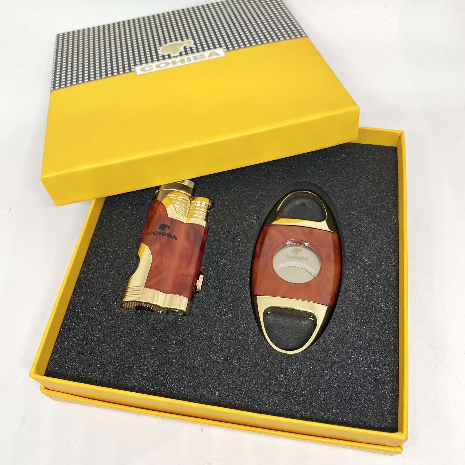 Турбо-запальничка Cohiba та гільйотина коричнево-золотистого кольору у наборі