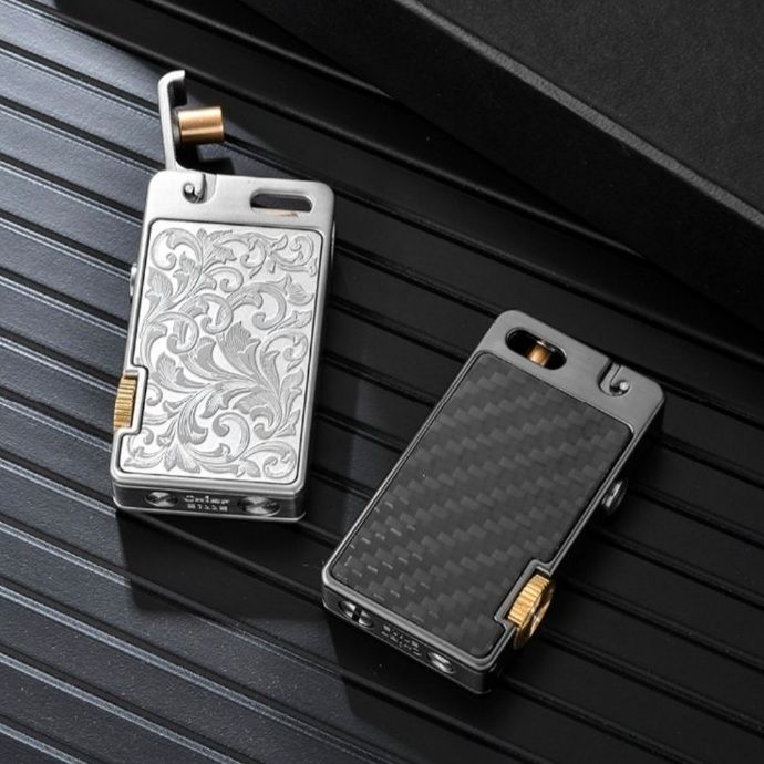 Корпус у кольорі "темний графіт" інкрустований динамічною текстурою карбонового волокна, що миттєво привертає увагу. Класичний бензиновий механізм гарантує стабільне полум'я за будь-яких умов, а золотистий кремал не лише забезпечує легкий розпал, але й слугує розкішним акцентом.
