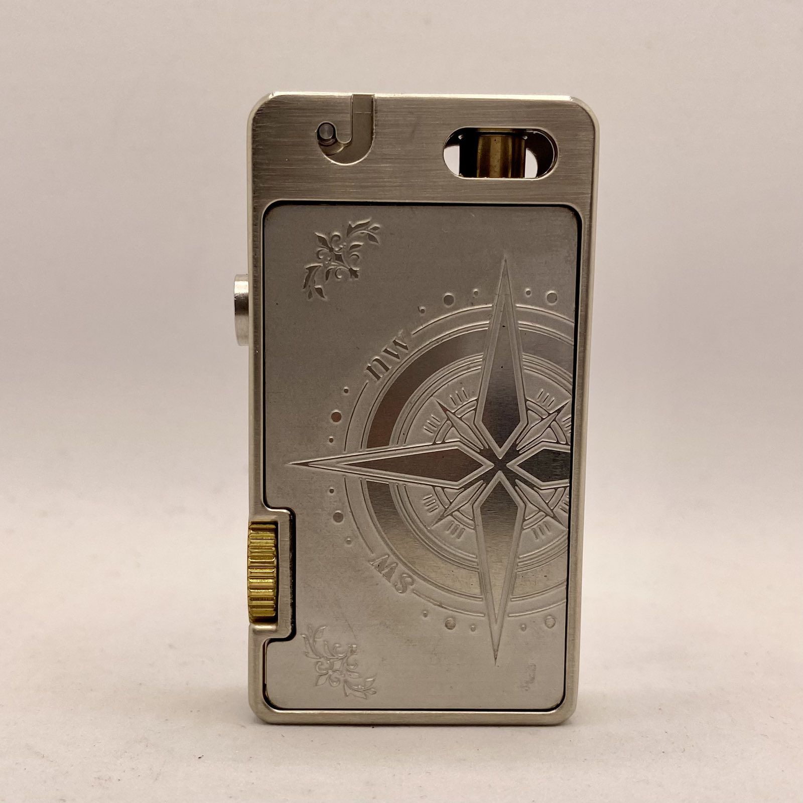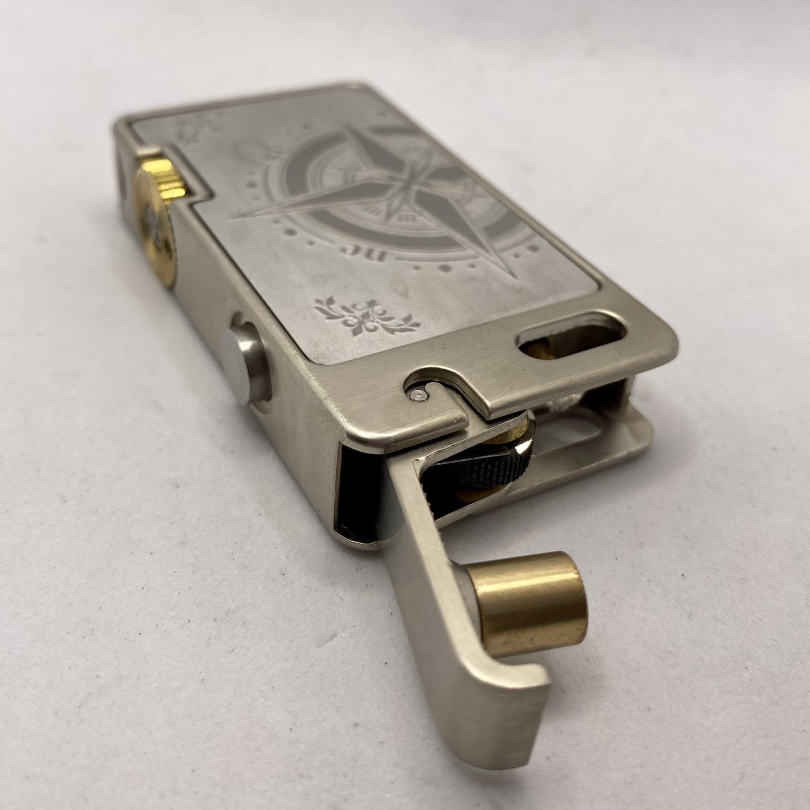 Контрастна елегантність: Класичний сріблястий метал корпусу гармонійно контрастує з латунним коліщатком кресала. Цей акцент підкреслює преміальність моделі та робить процес запалювання естетичним ритуалом.