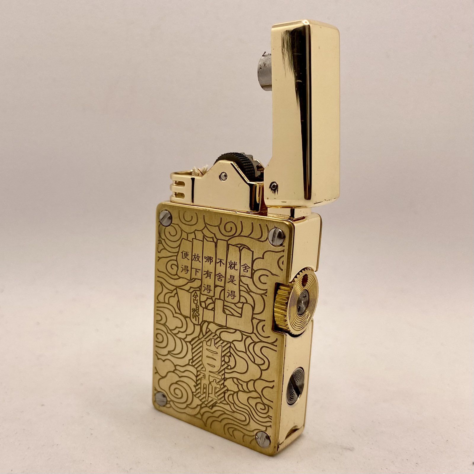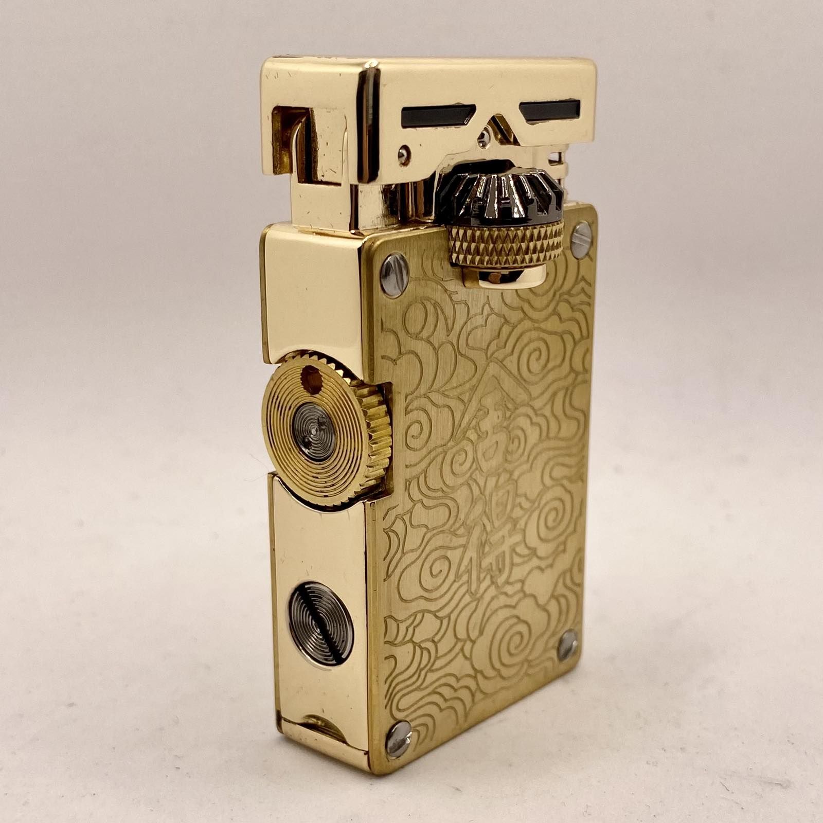 Ексклюзивне Гравіювання: Корпус прикрашений глибоким, деталізованим східним орнаментом у вигляді хмар чи стилізованих хвиль. У центрі композиції — символічні ієрогліфи ( що означають "Багатство" або "Удача"), які наділяють аксесуар особливим, позитивним значенням.