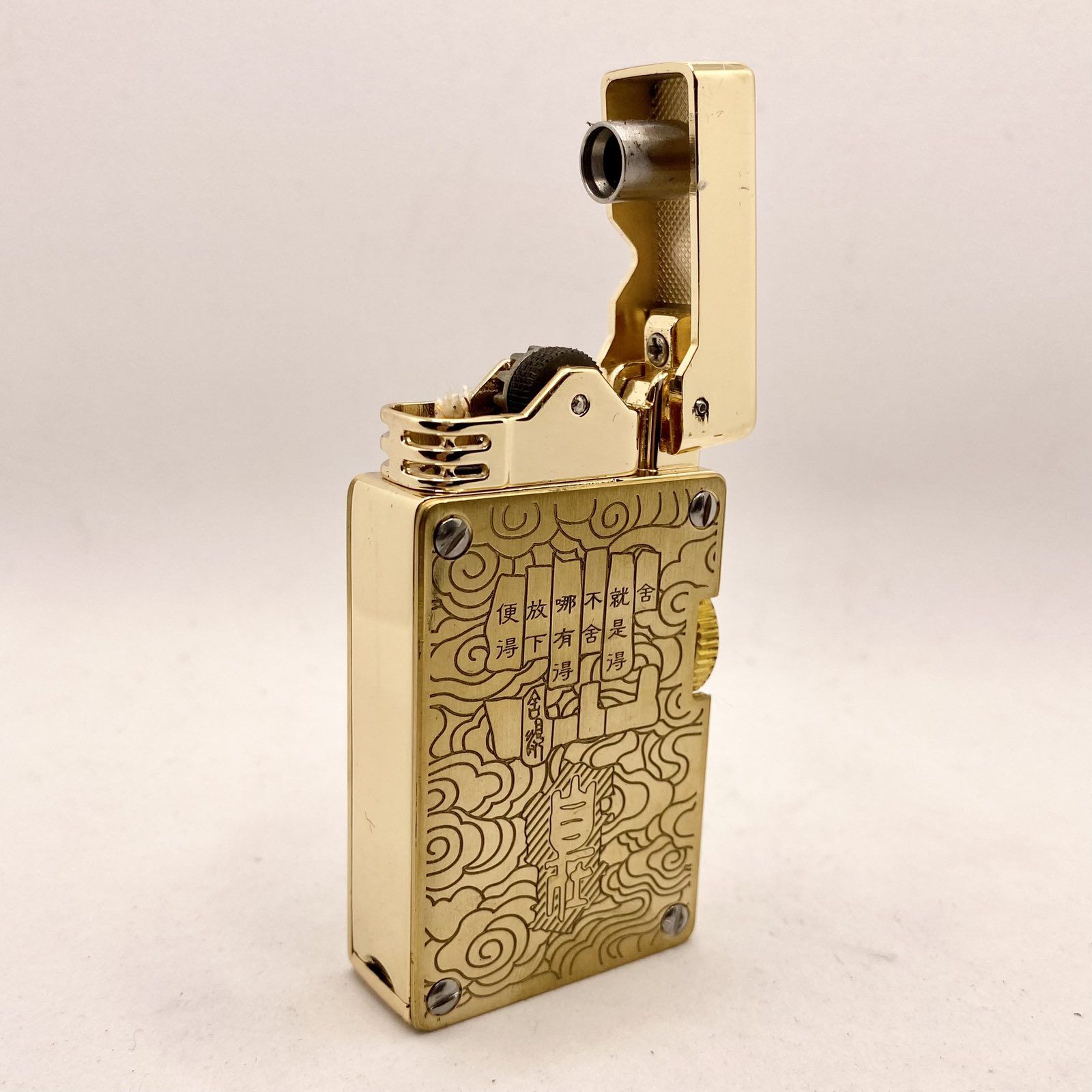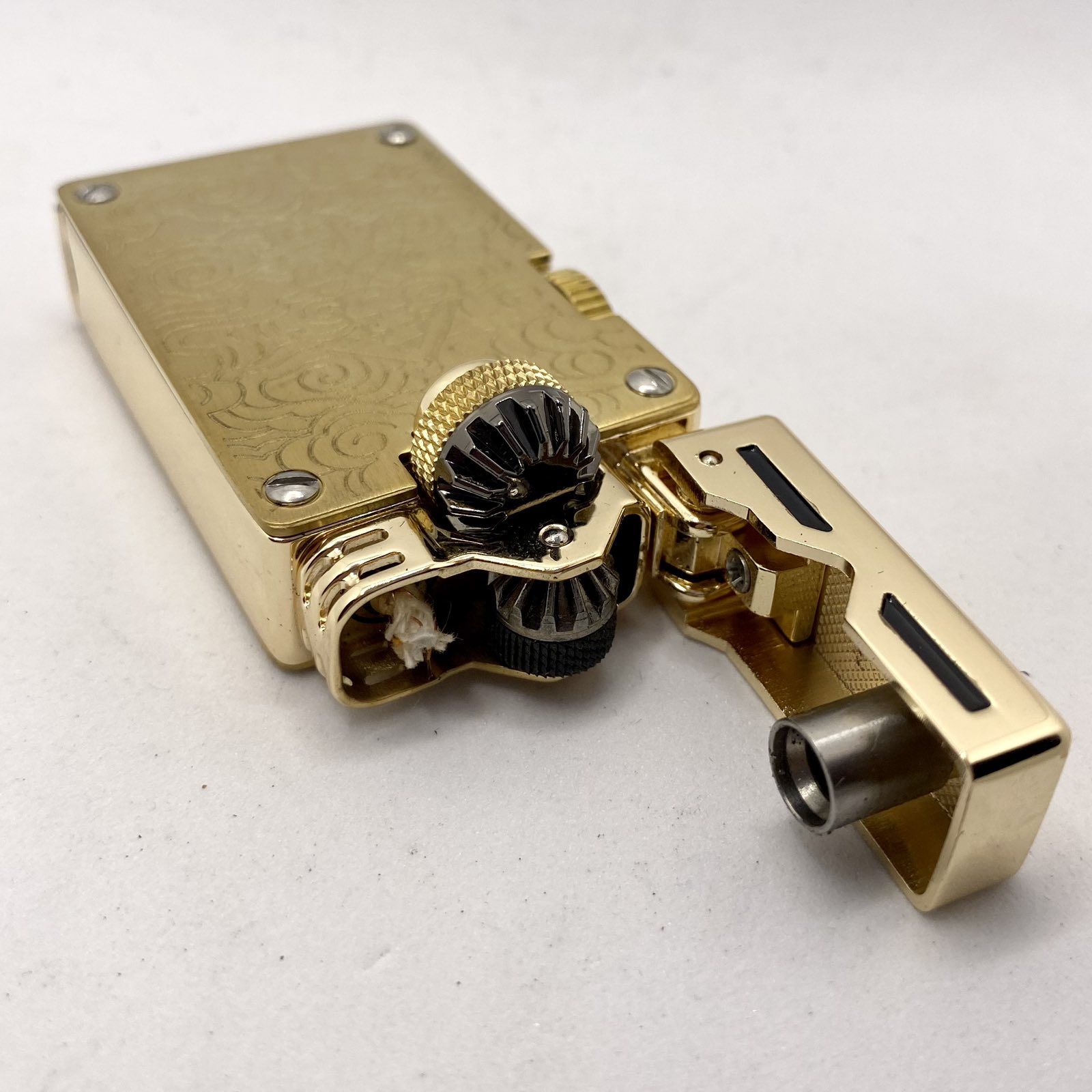 Елегантний зовнішній вигляд: Теплий золотистий відтінок металу у поєднанні з чорнінням гравіювання надає запальничці вишуканого, дещо вінтажного вигляду.