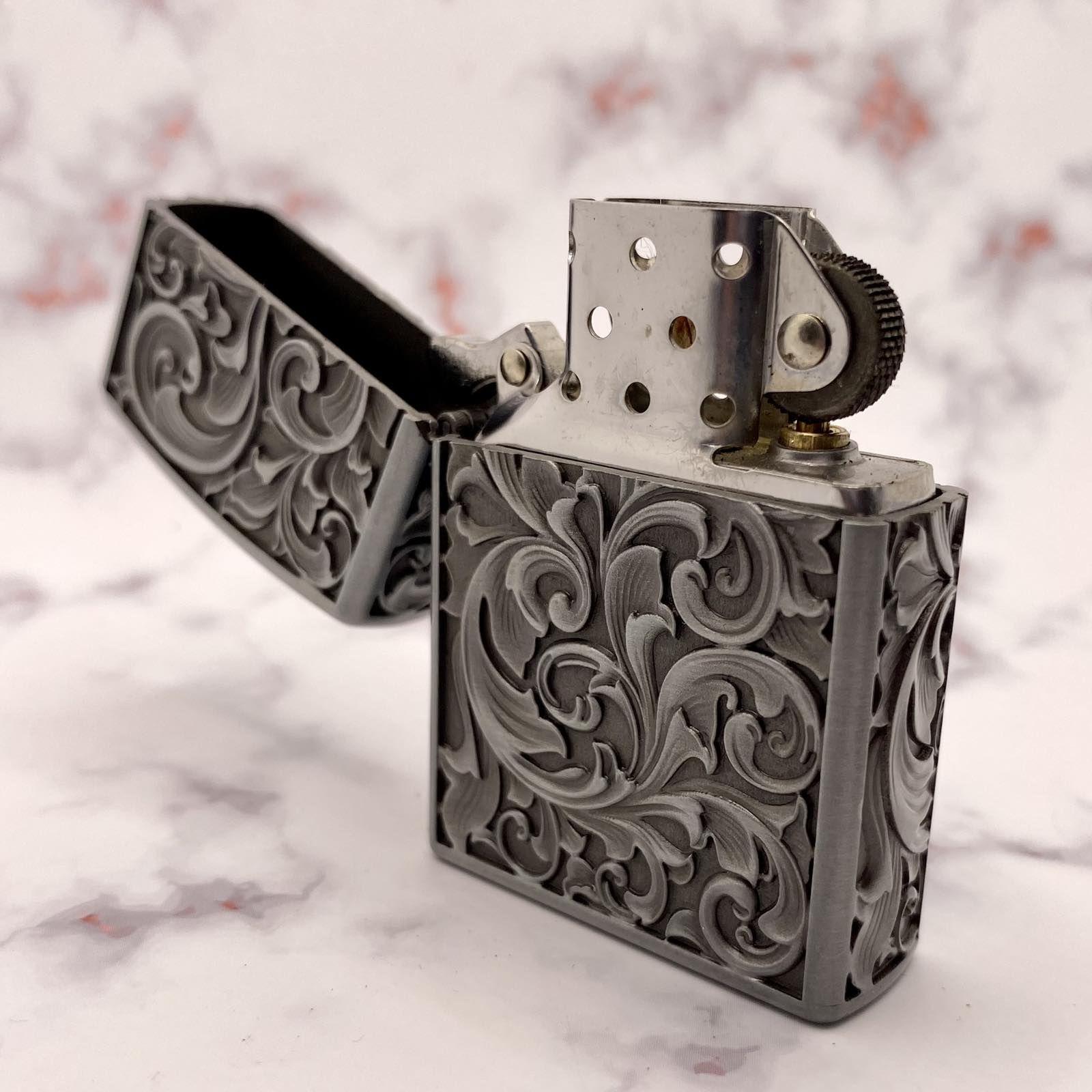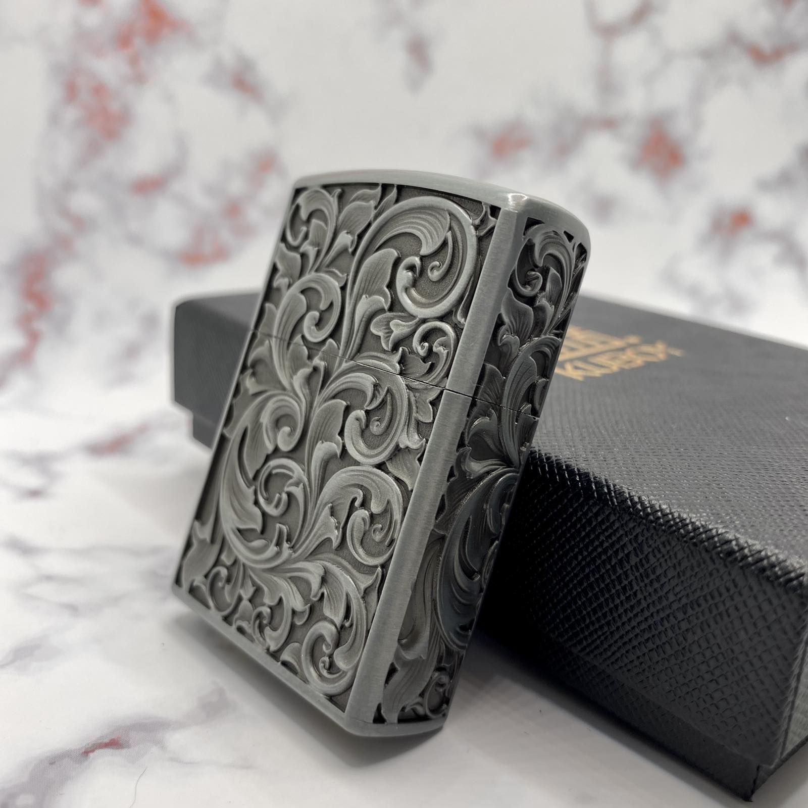 Глибоке Рельєфне Оздоблення: Уся поверхня прикрашена складним, багатошаровим гравіюванням, яке перетворює корпус на тактильно приємний і візуально захоплюючий предмет. Це не просто малюнок, це текстура, яку хочеться відчувати.