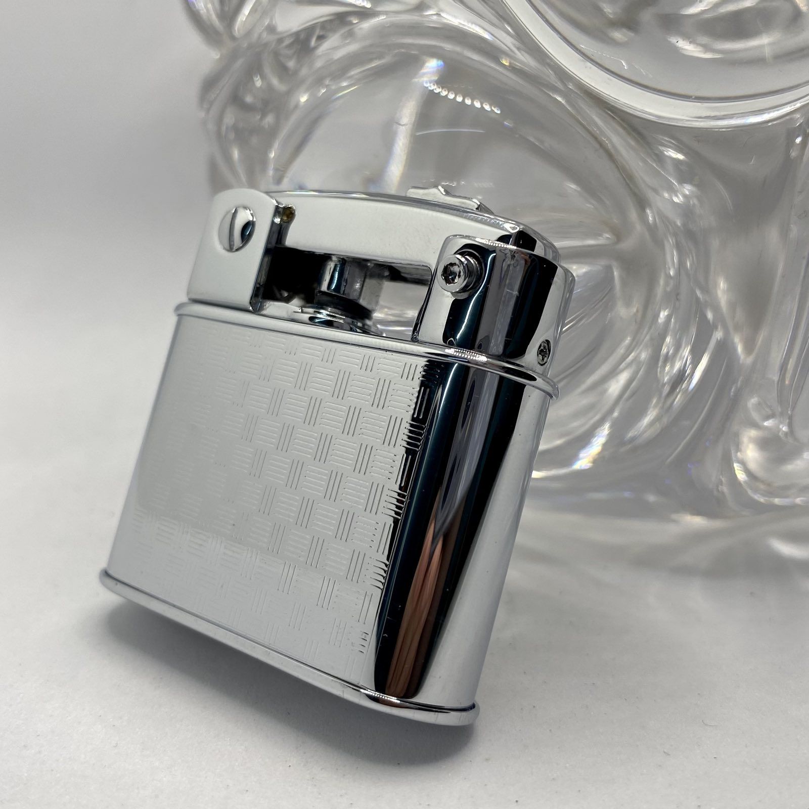 Ефектний Візерунок: Фронтальна панель має елегантне гільйошоване гравіювання у вигляді дрібного ромбовидного плетіння. Це не просто декор, а й гарантія, що запальничка не вислизне з рук.