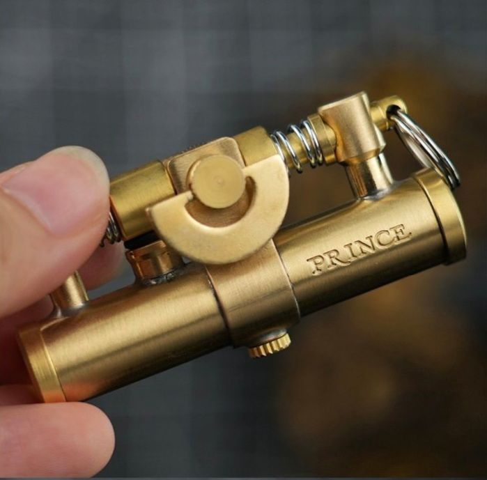 Дизайн: Виготовлена з високоякісної латуні, яка з часом покривається благородною патиною. Її відкрита конструкція з двома потужними пружинами та складним механізмом перетворює кожне використання на видовище. На корпусі – гравіювання "PRINCE".