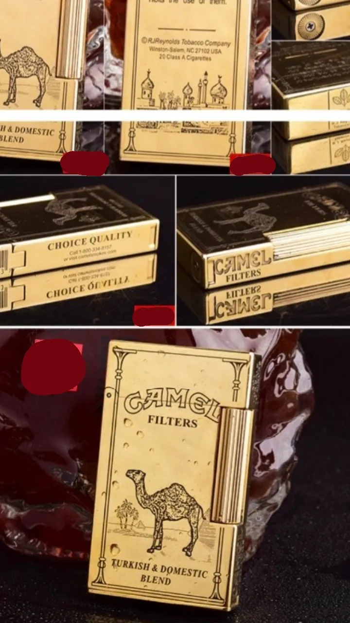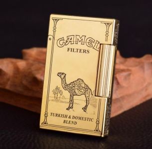 Головна особливість запальнички — це її деталізоване гравіювання, що повністю відтворює дизайн класичної пачки сигарет Camel Filters. На лицьовій стороні зображений легендарний верблюд на тлі пустельних пірамід та пальм, що викликає асоціації з пригодами та далекими подорожами. Кожен напис, від "CAMEL FILTERS" до "TURKISH & DOMESTIC BLEND", виконаний з неймовірною точністю, додаючи виробу автентичності.