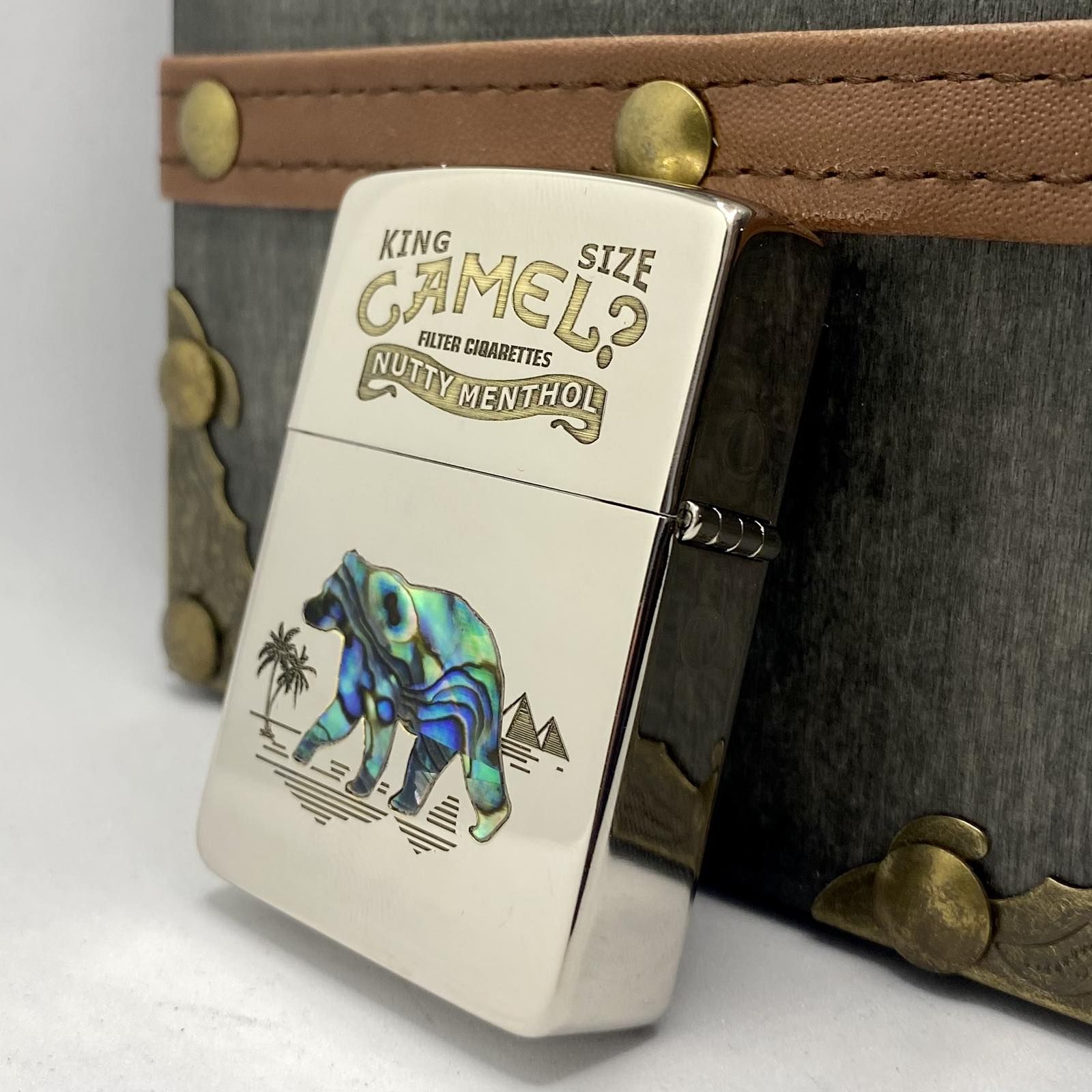 👑 Культовий Дизайн: Гравіювання "KING SIZE CAMEL NUTTY MENTHOL" додає аксесуару вінтажного, колекційного шарму.