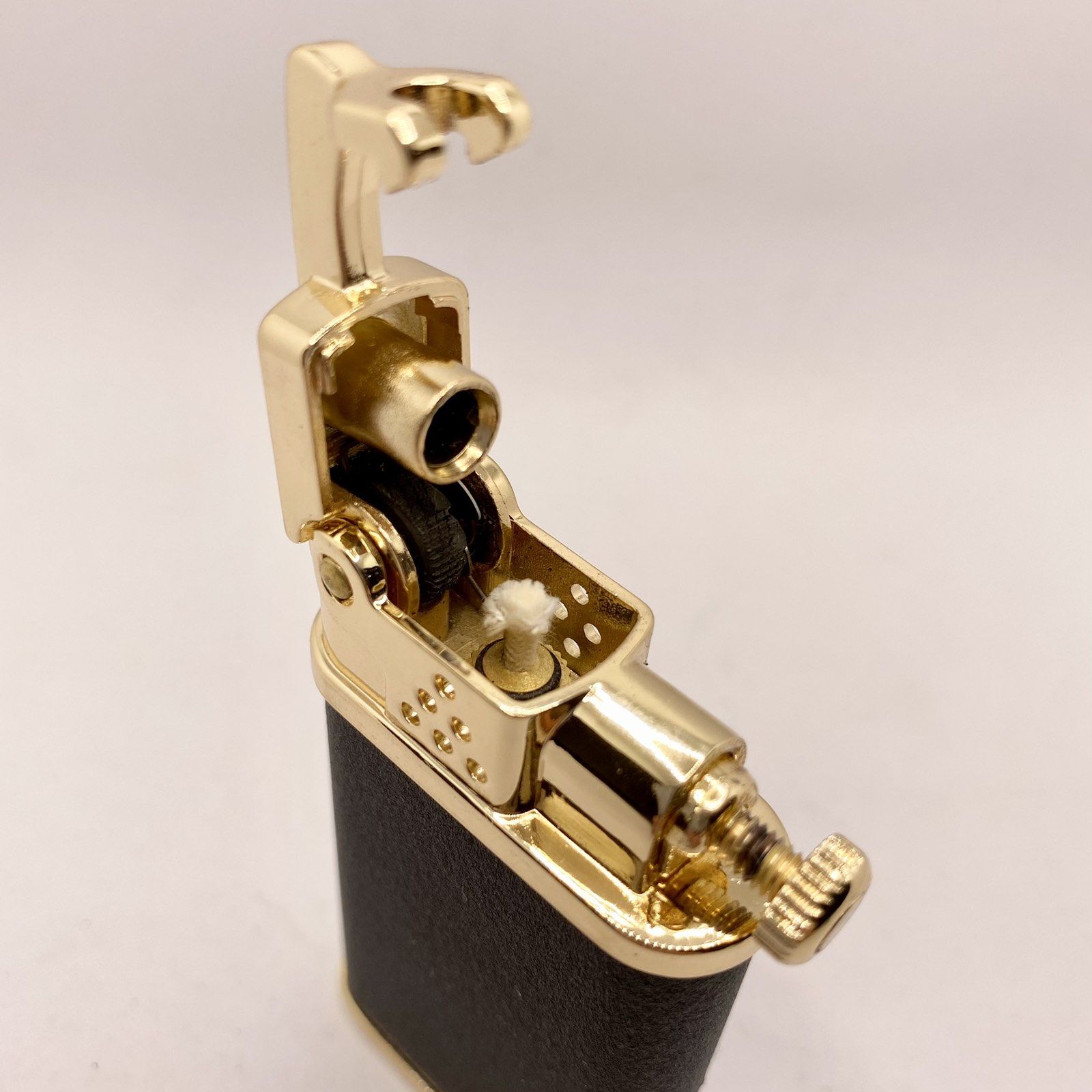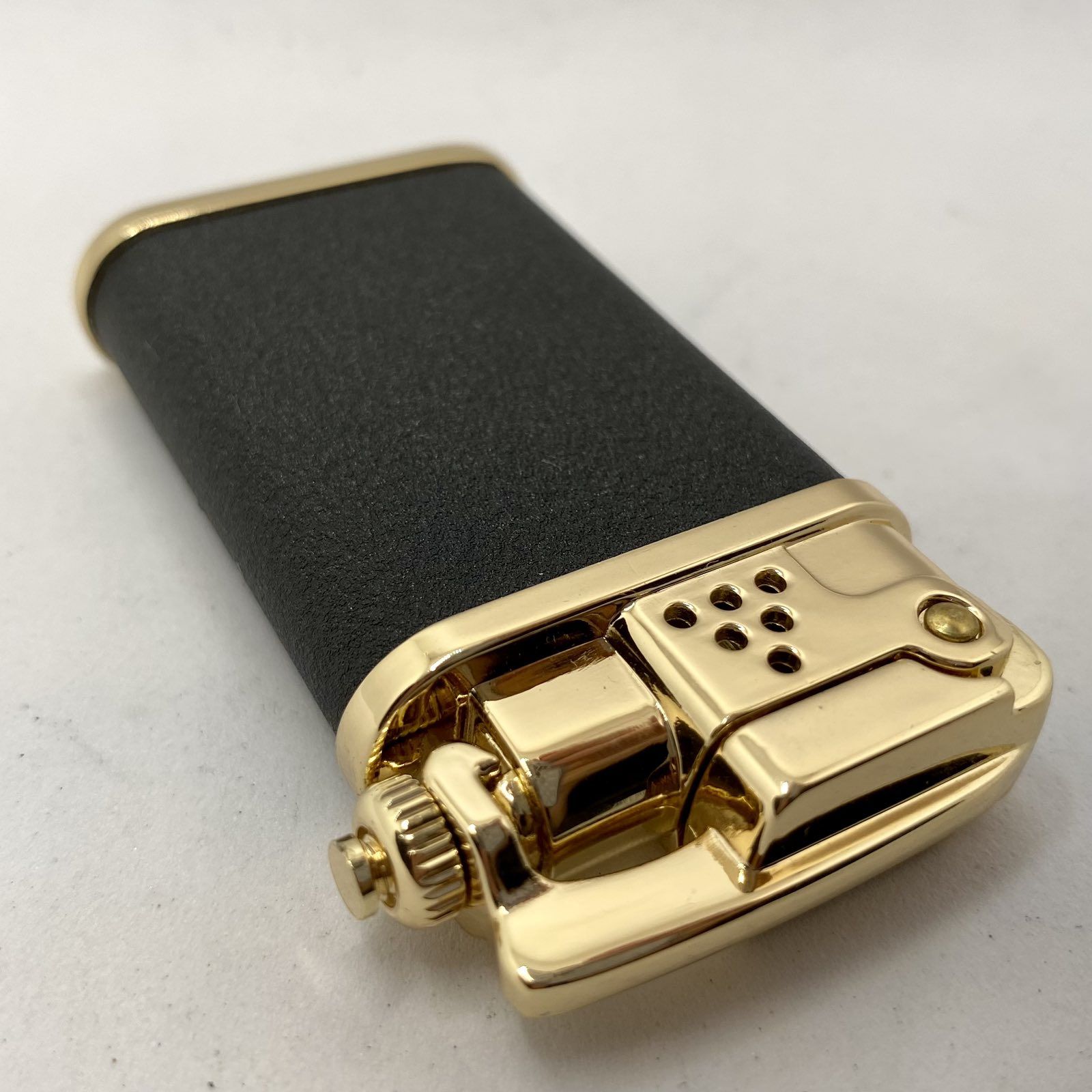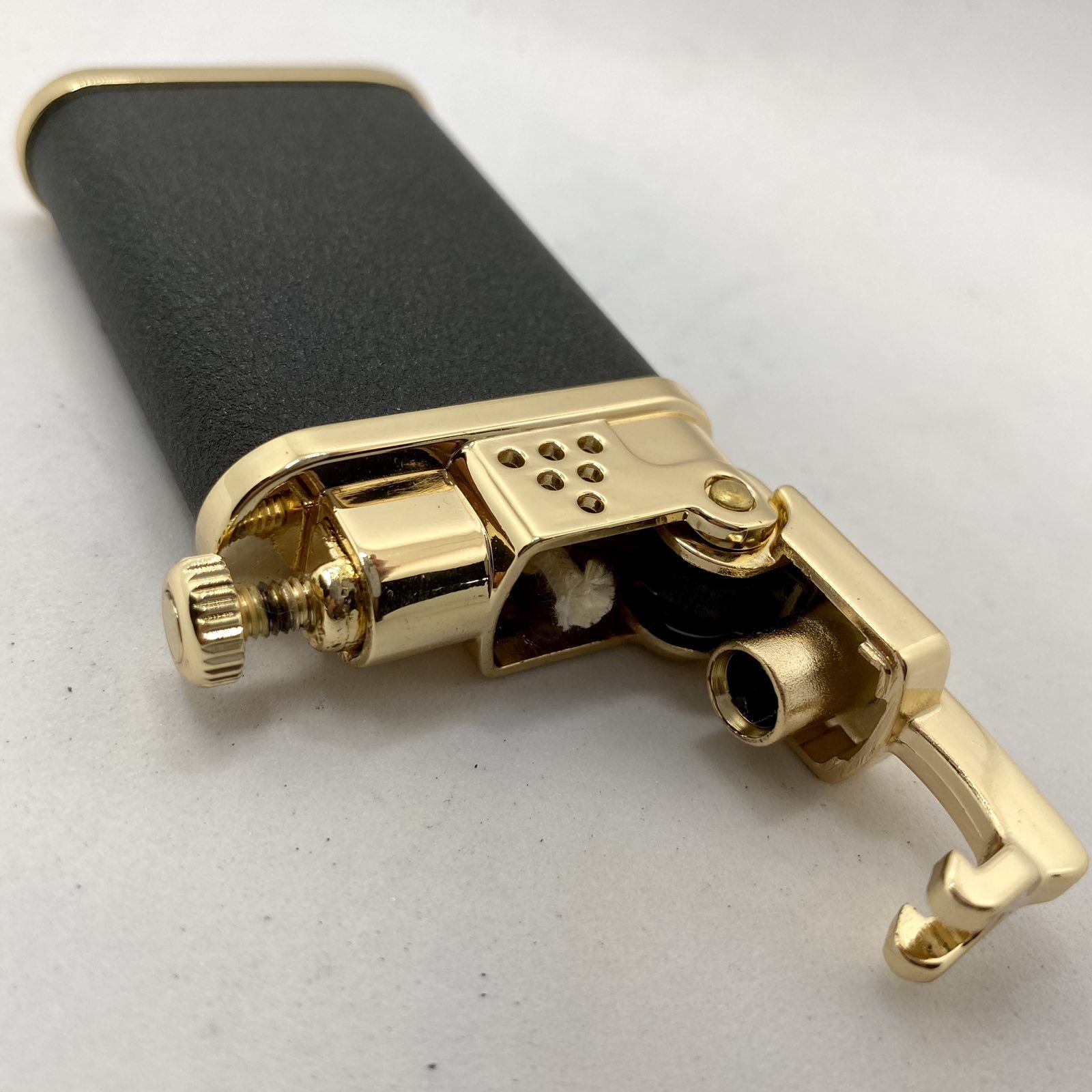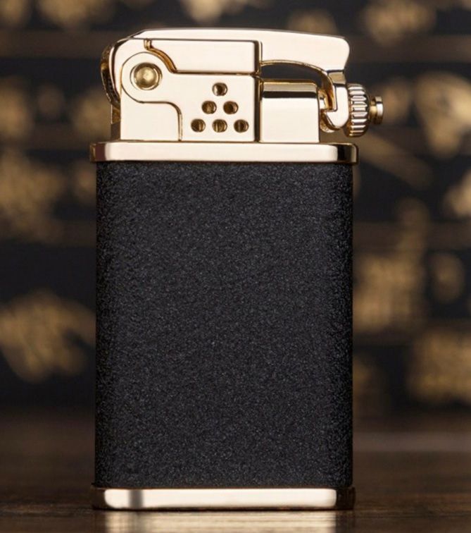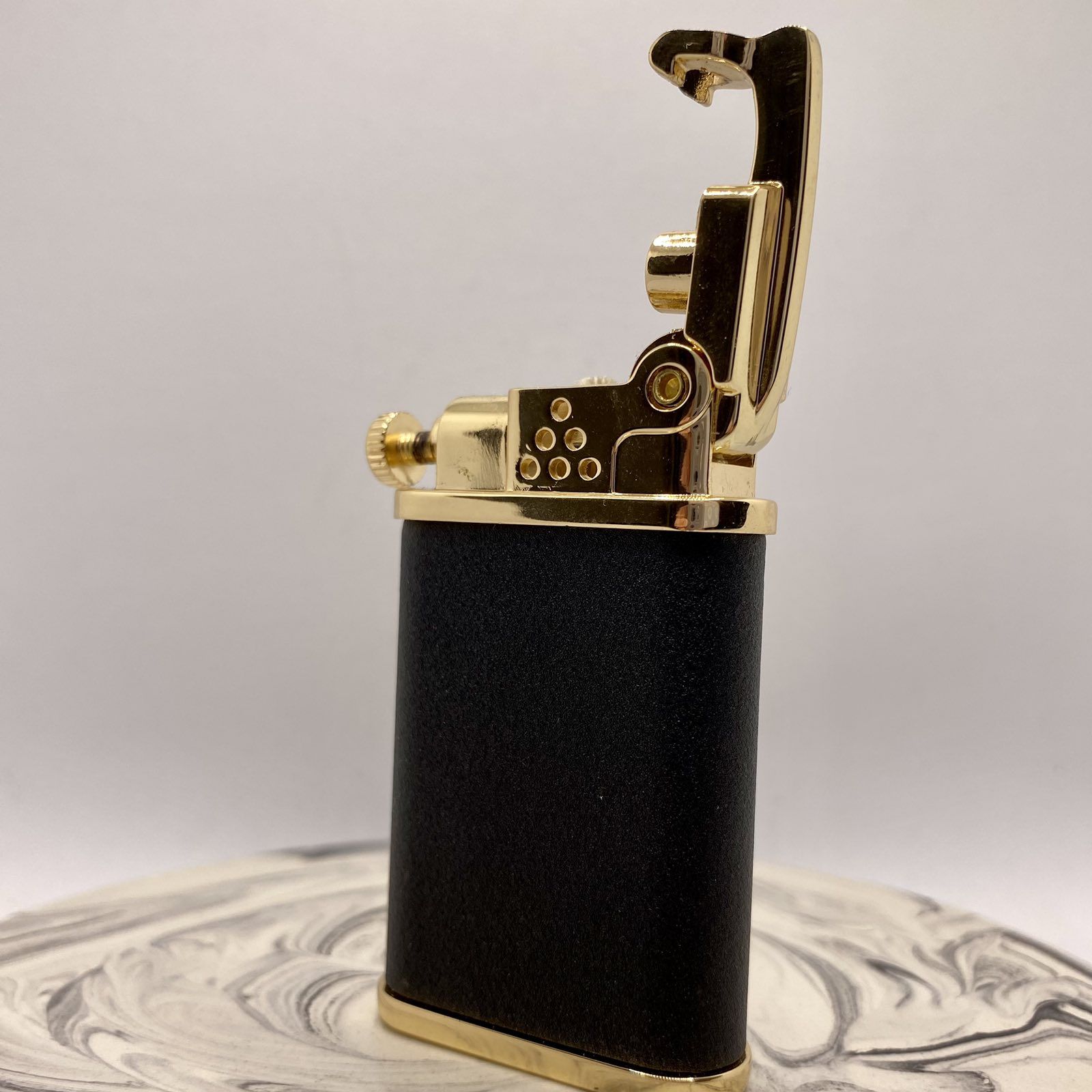 Елегантний Дизайн: Вишукане поєднання полірованого золотистого металу та глибокого чорного, текстурованого покриття створює ідеальний баланс між розкішшю та мінімалізмом. Завдяки цій обробці запальничка надійно лежить у руці.