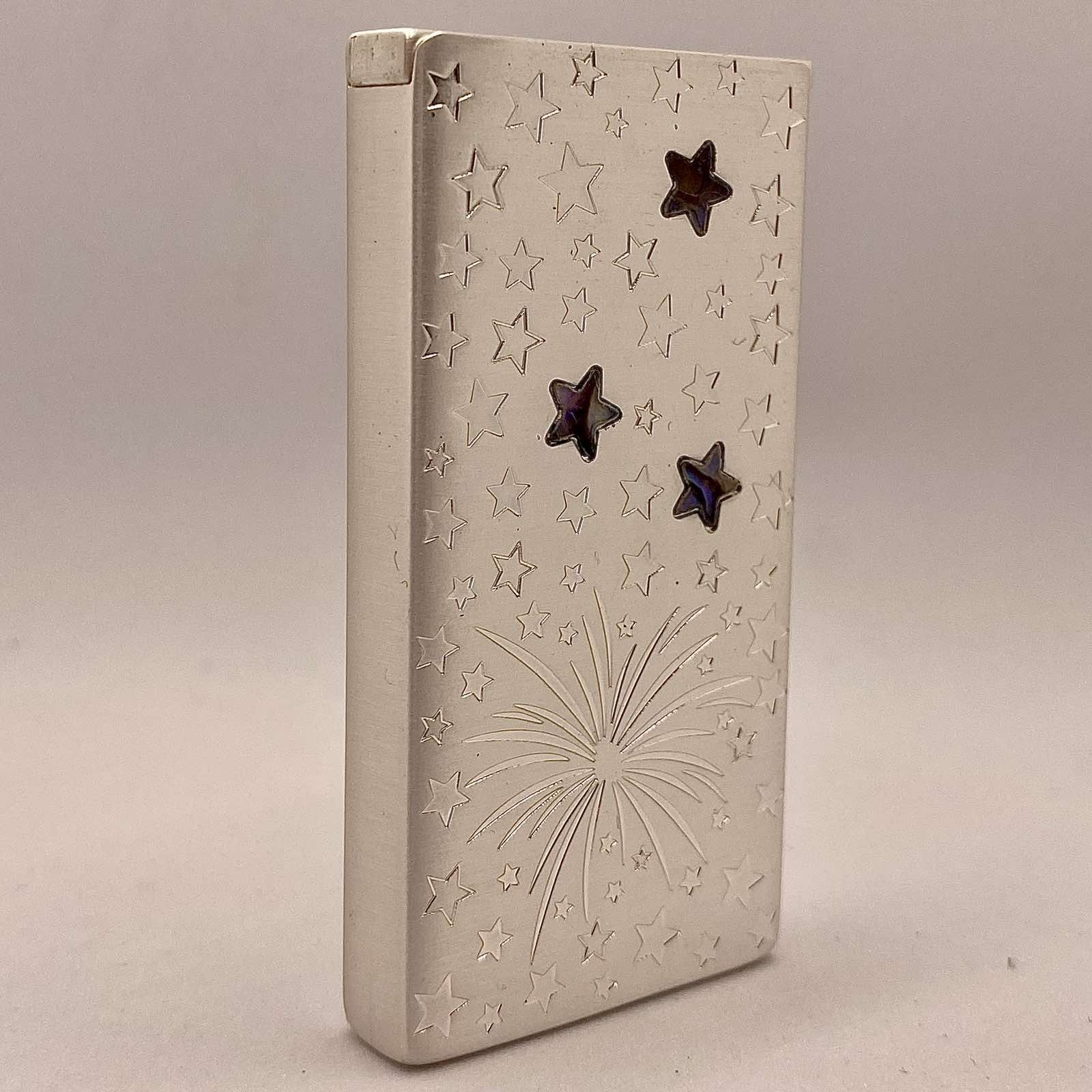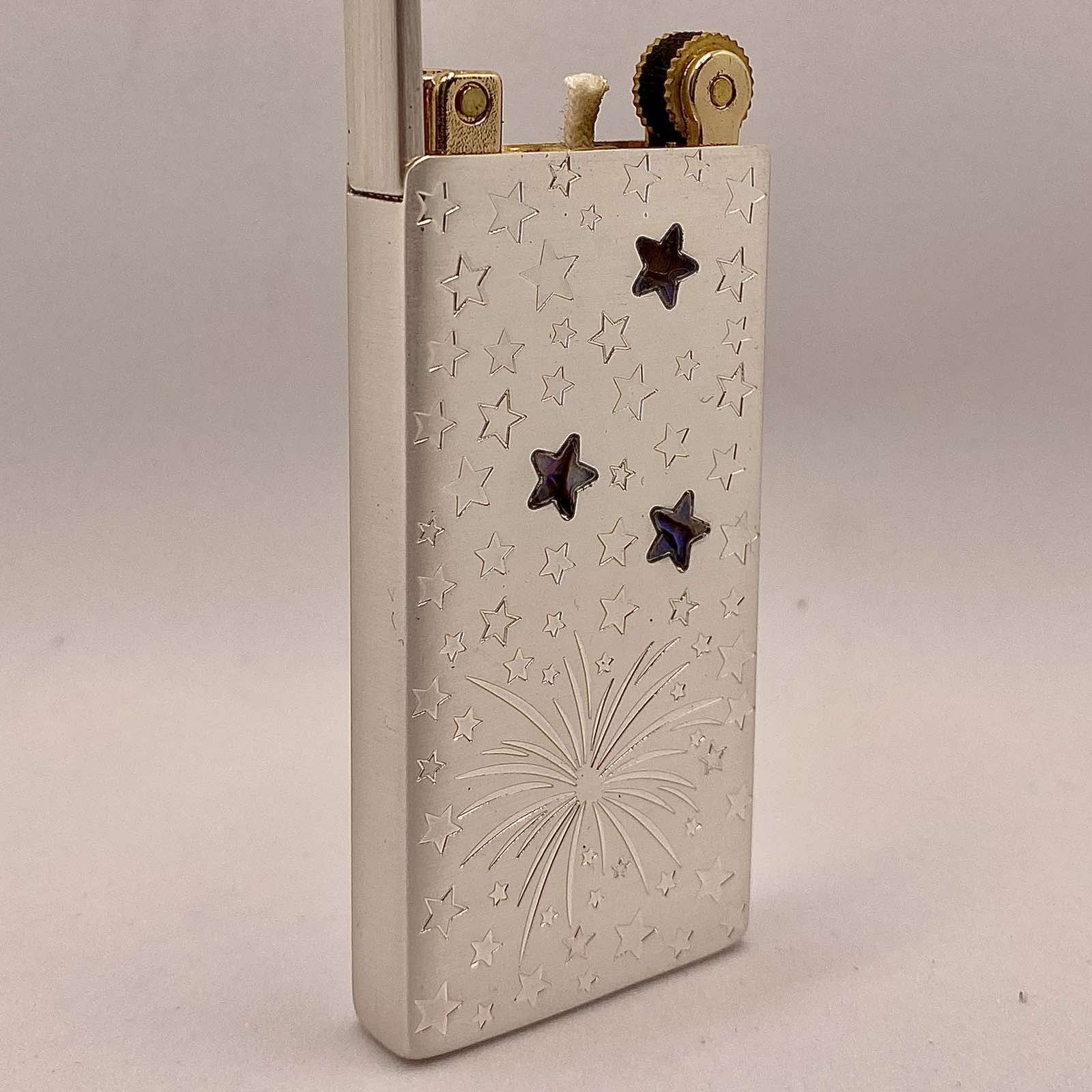 Чарівна Інкрустація: Три головні зірки виконані з ефектом наскрізних вставок або інкрустовані матеріалом, який відбиває світло різними відтінками (синій, фіолетовий, бірюзовий). Це надає запальничці дорогого та магічного вигляду.