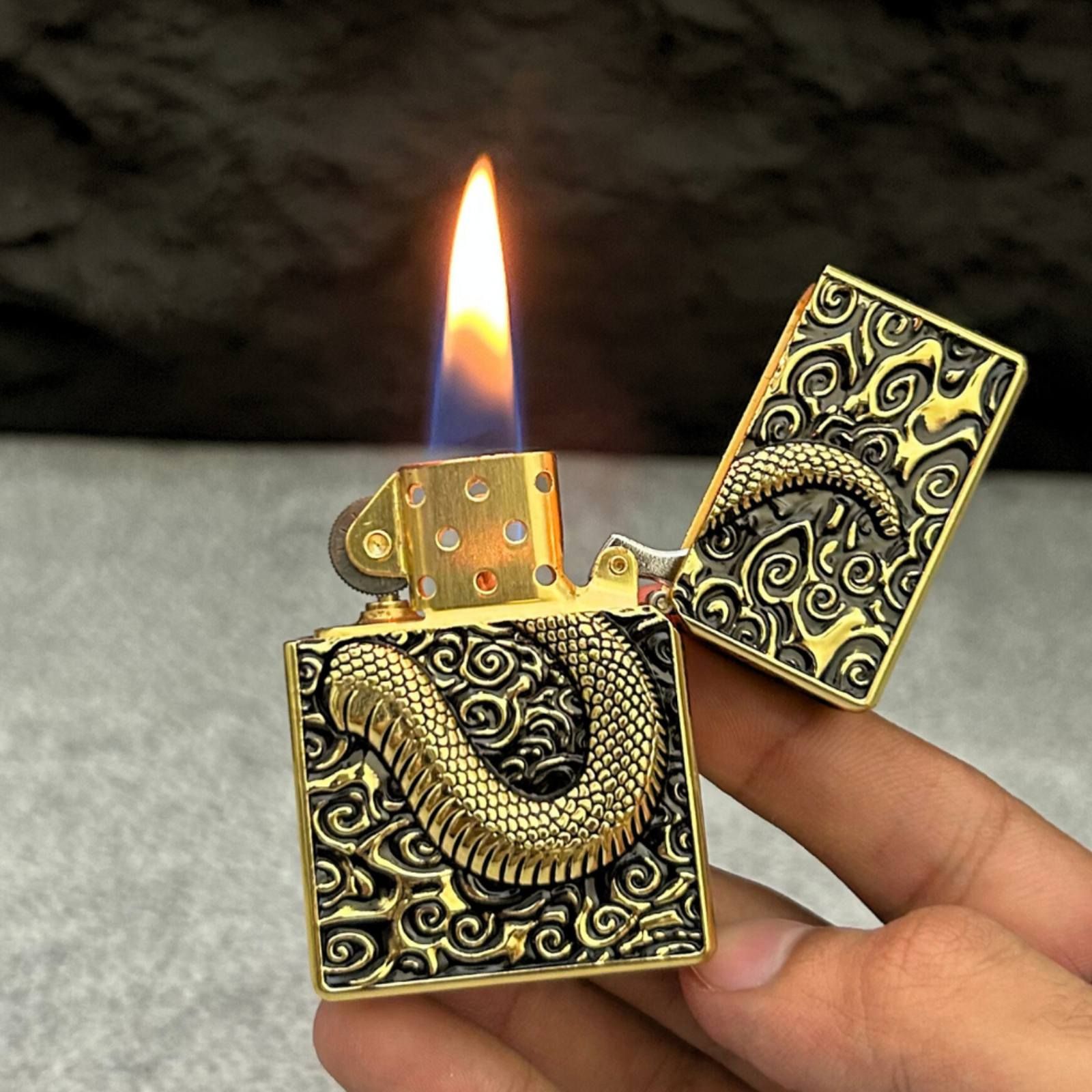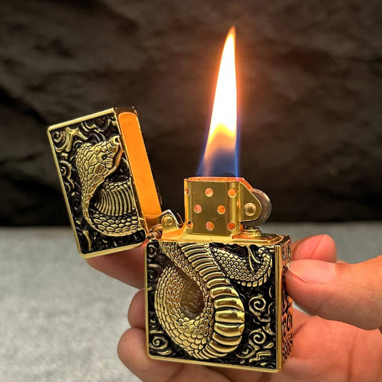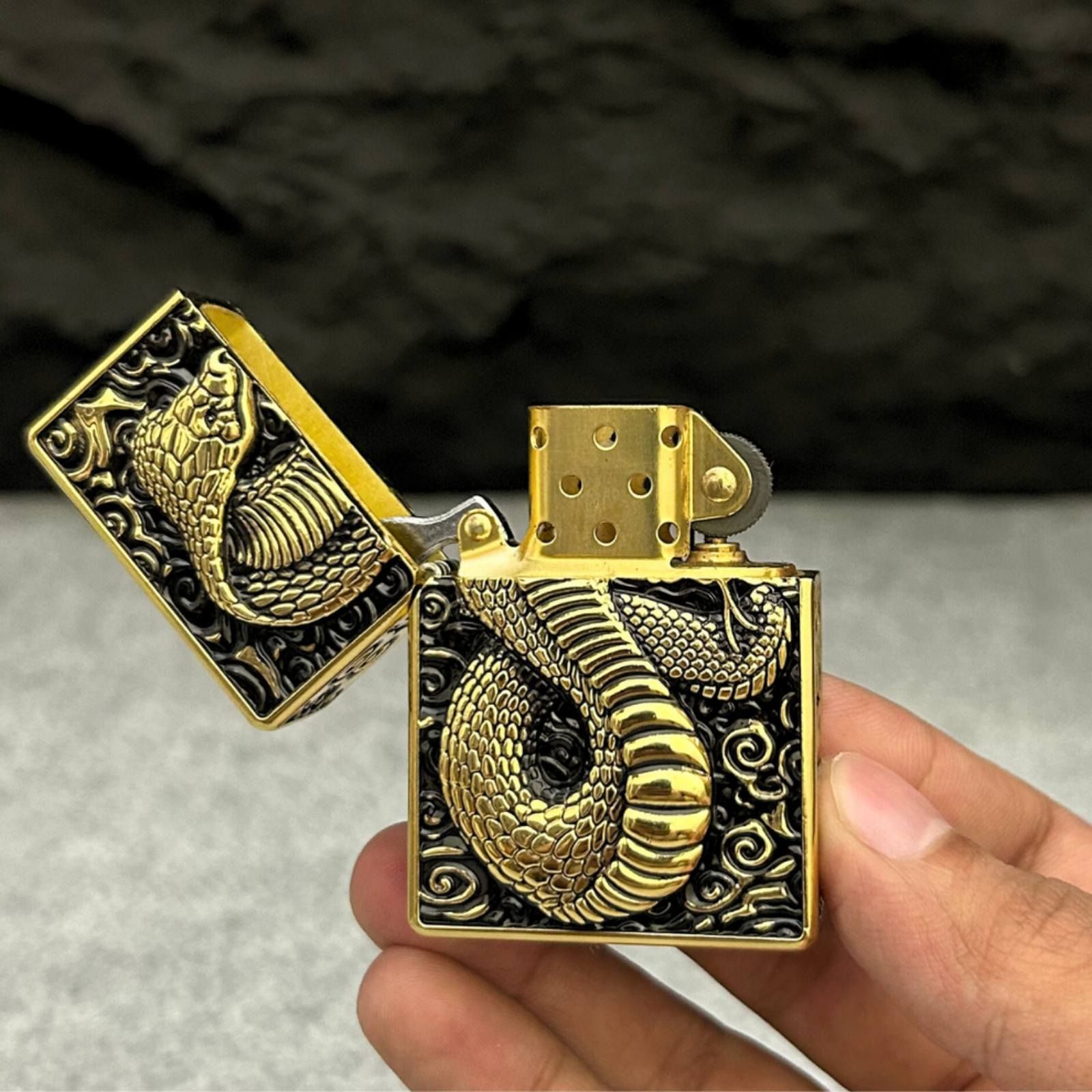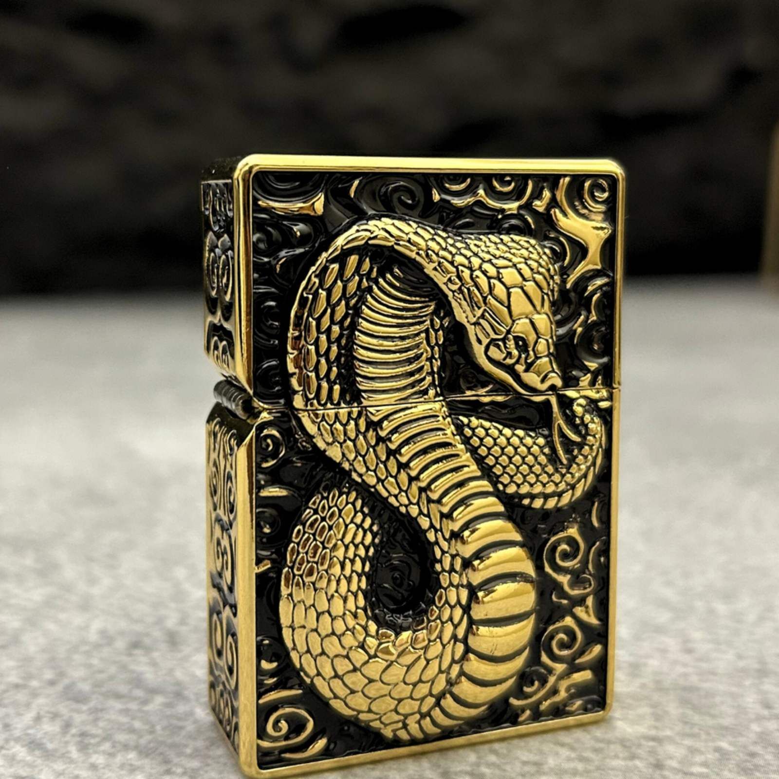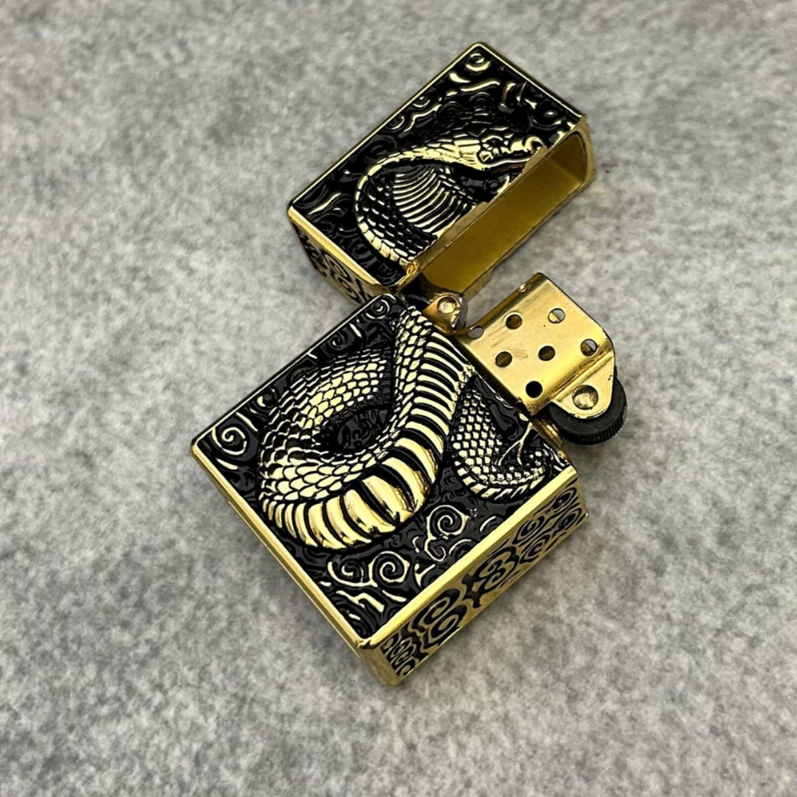Відчуйте вагу справжньої якості. Ця модель від Zorro — це не просто аксесуар для прикурювання, а масивна ювелірна робота в корпусі Heavy Armor. Глибоке чорне черніння слугує ідеальним фоном для золотої кобри, що ніби завмерла перед кидком.