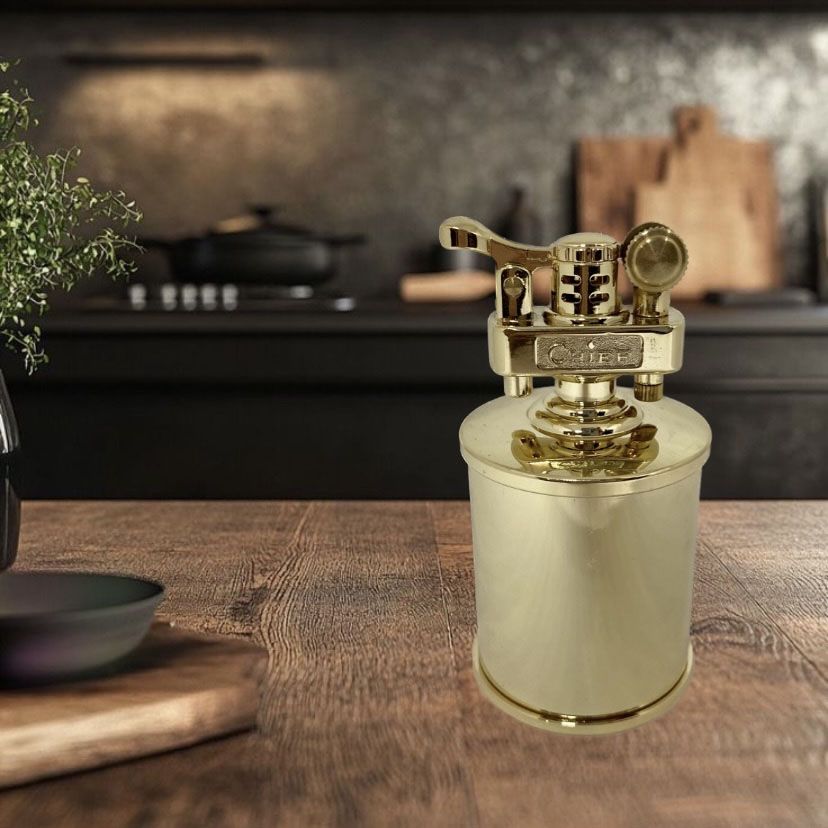 Відчуйте естетику минулої епохи з настільною запальничкою від культового бренду Chief. Цей аксесуар створений для тих, хто цінує ритуали та оточує себе речами з історією. Масивний корпус, вилитий з металу з благородним золотистим блиском, ідеально доповнить інтер'єр солідного офісу, лаунж-зони або домашньої бібліотеки.
